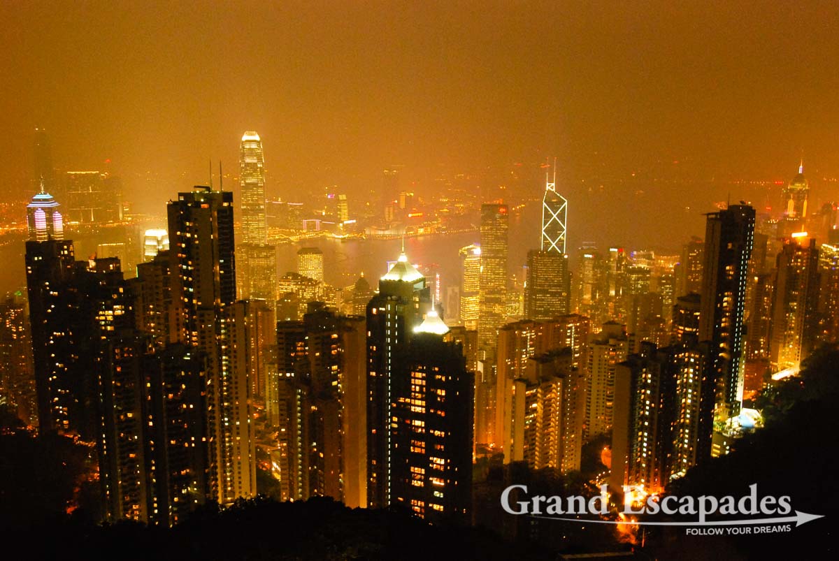 In the evening we took the cable car up Victoria Peak. From there, 552 metres high above Hong Kong, you have an incredible view of the harbour and Kowloon. After leaving the cable car, nothing indicates that there is indeed a free of charge viewpoint outside the complex, so most people follow the big signs “Viewing Platform”, which costs another 20 HK Dollars. Of course, the path to both attractions leads through endless shopping arcades and a few restaurants. Despite the hazy weather, the view from the “free” platform was breathtaking.