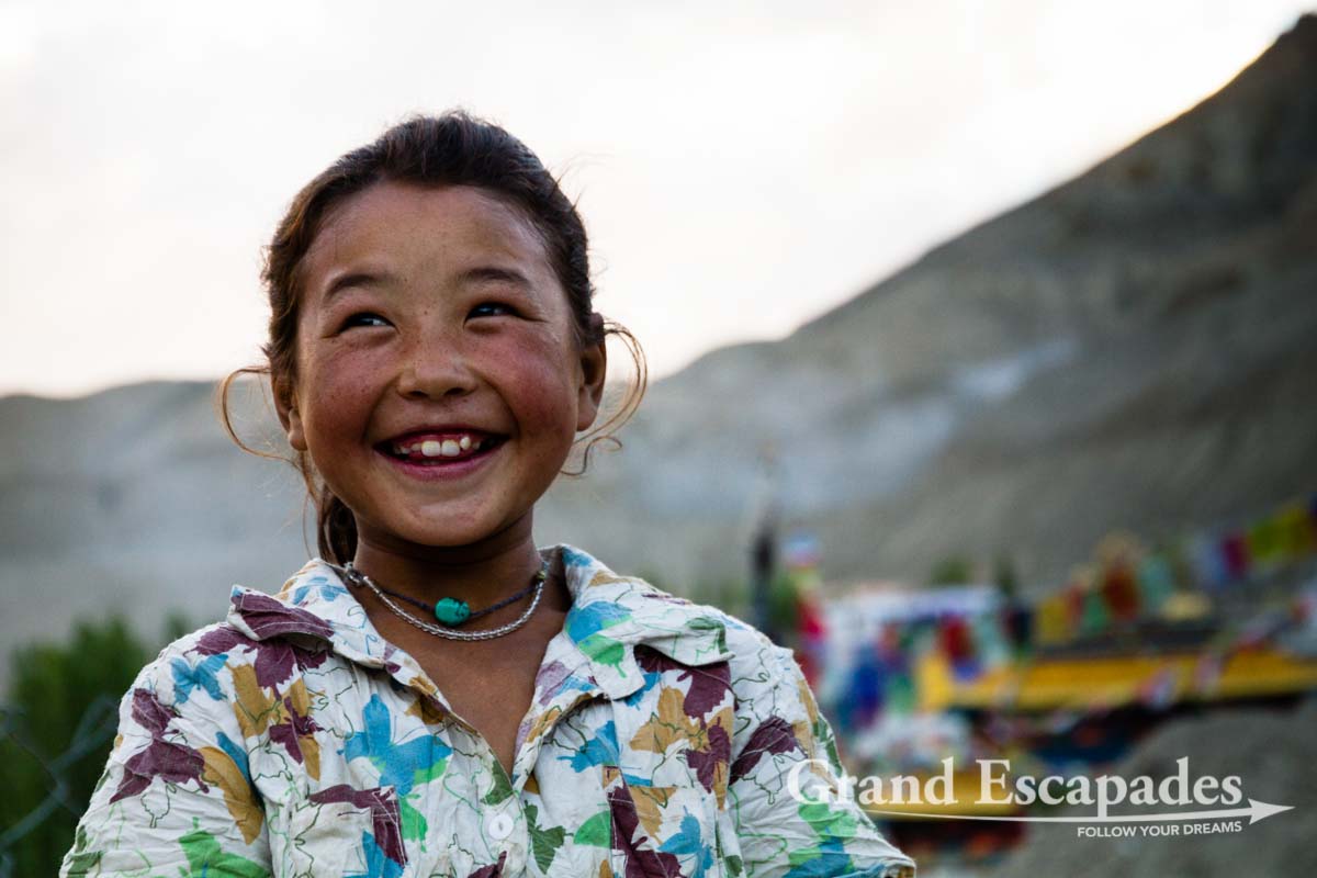 We checked into the guesthouse closest to Moonland, the Lions’ Den. From there we had a great view both of the “Moonland Landscapes” and the monastery. Run by a lovely family, we spent the evening in their living room together with their two kids and grandmother, who she was praying all the time. One wall of this room was full of shelves stuffed with an incredible number of dishes and brass pots. We naively asked if the family was collecting those, only to be told that every decent household in Ladakh is equipped like this – To be used when family and friends visit or for weddings.