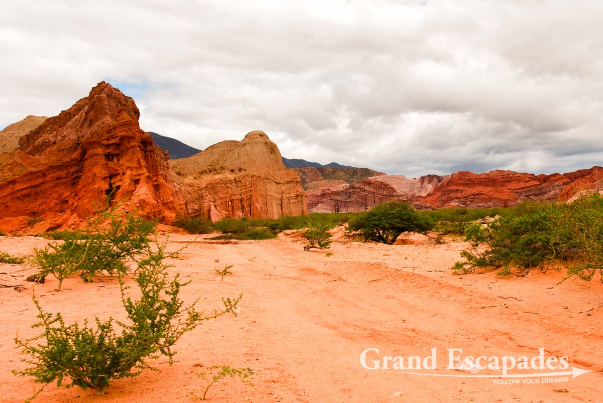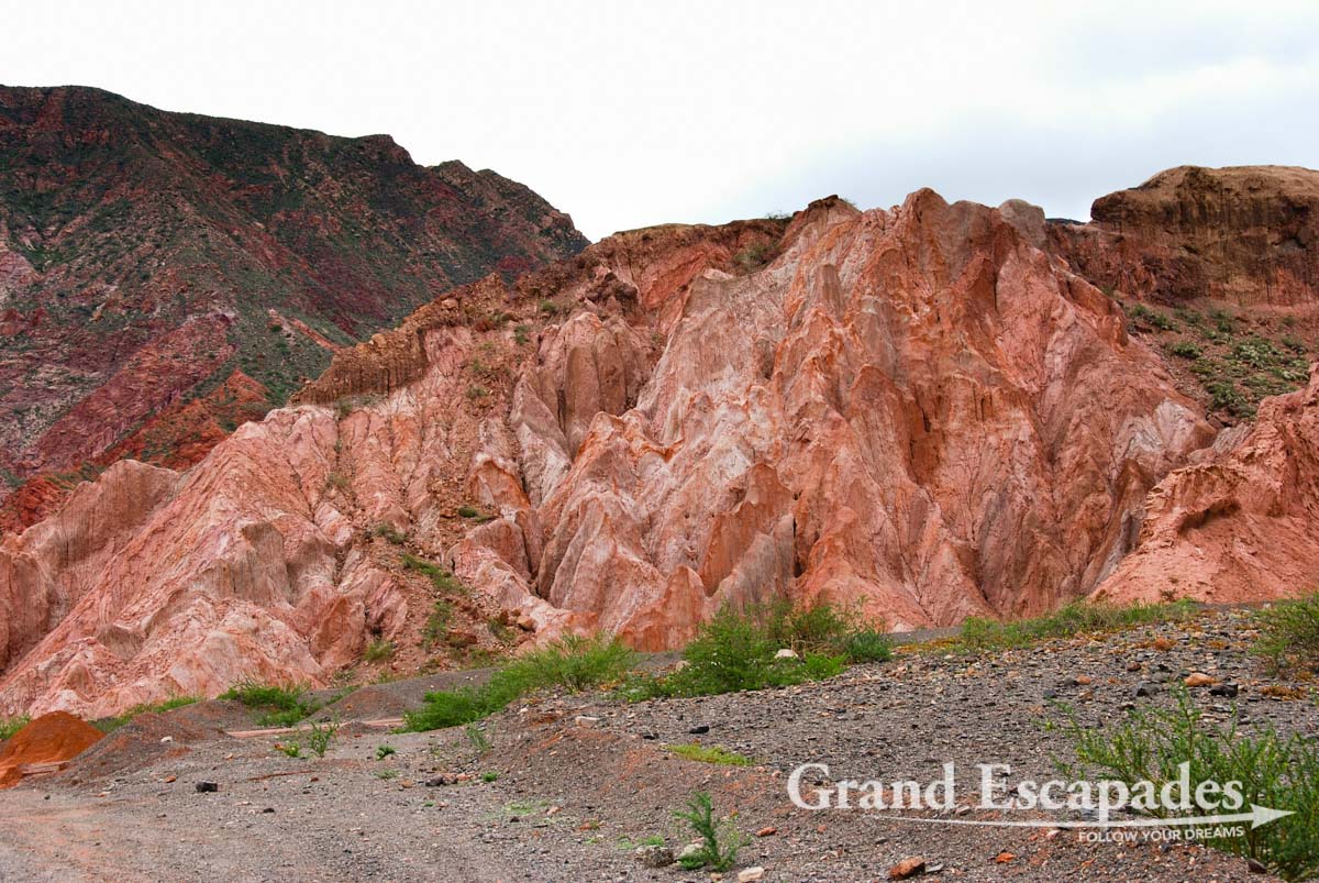 La Quebrada de Cafayate – A magic display of colours, dark red or pinkish hills and whitish cliffs with brown tops are often twisted into bizarre formations.