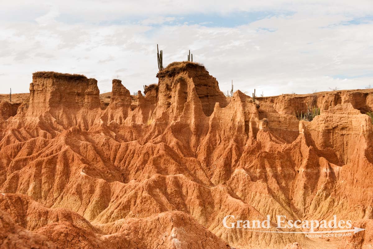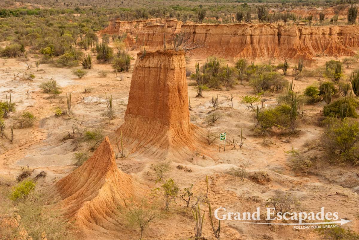 “Laberintos de Cusco” (Cusco Labyrinths), dotted with different cactuses. The little towers, cliff and ravines were sculptured by the wind and infrequent rain – Desert de Tatacoa, Colombia