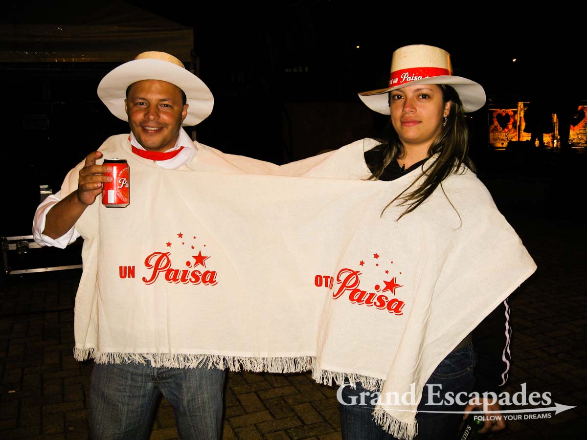 The dress code for Columbians visitors is easy to describe: a kind of cowboy hat, accompanied by a folded poncho flung across the shoulder, a huge cup of beer or an oversized bottle of the same liquid at hand, at all times. Hundreds of street vendors make sure that stuff is available.