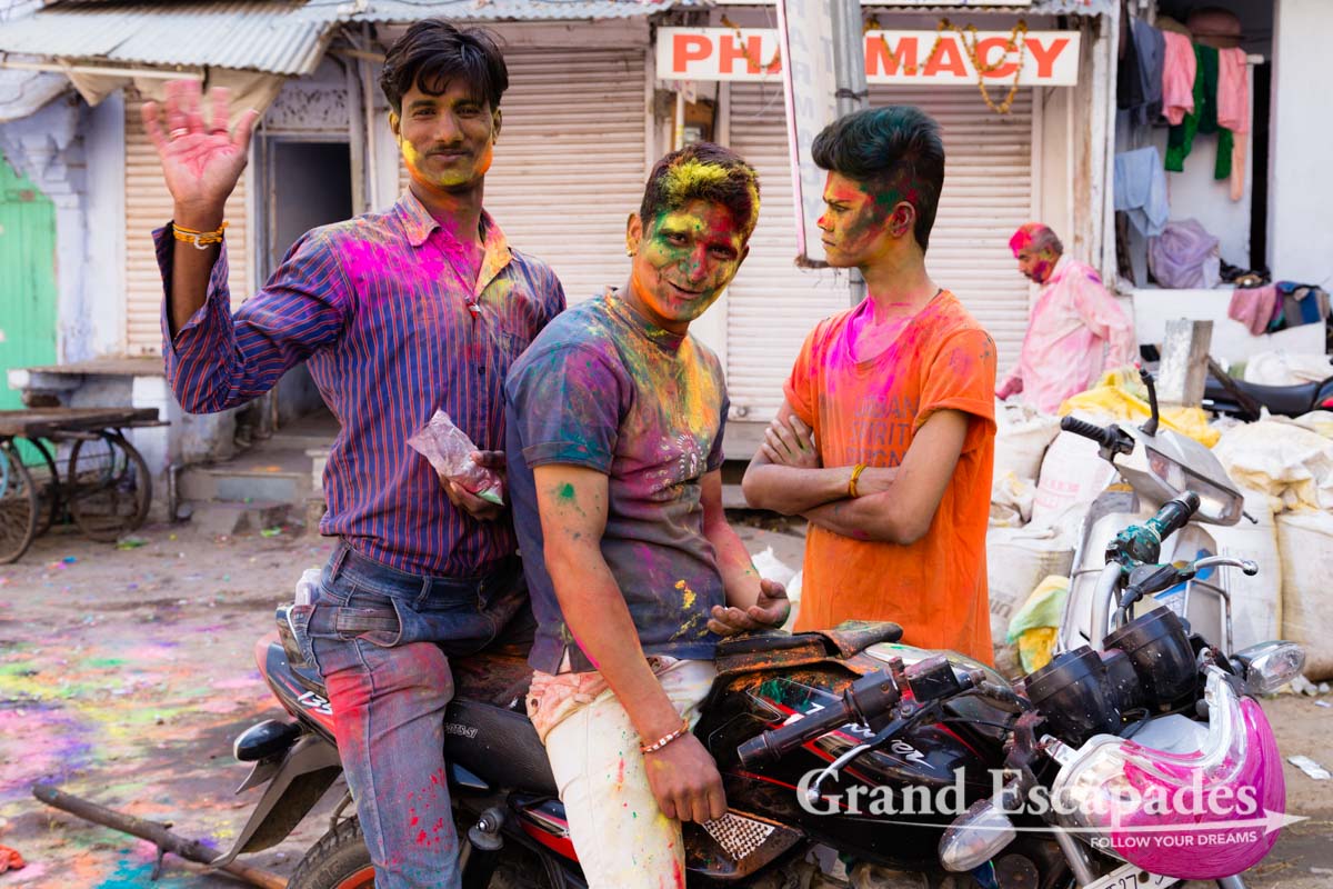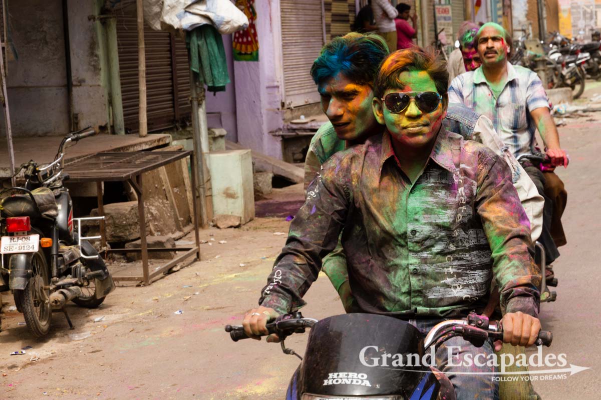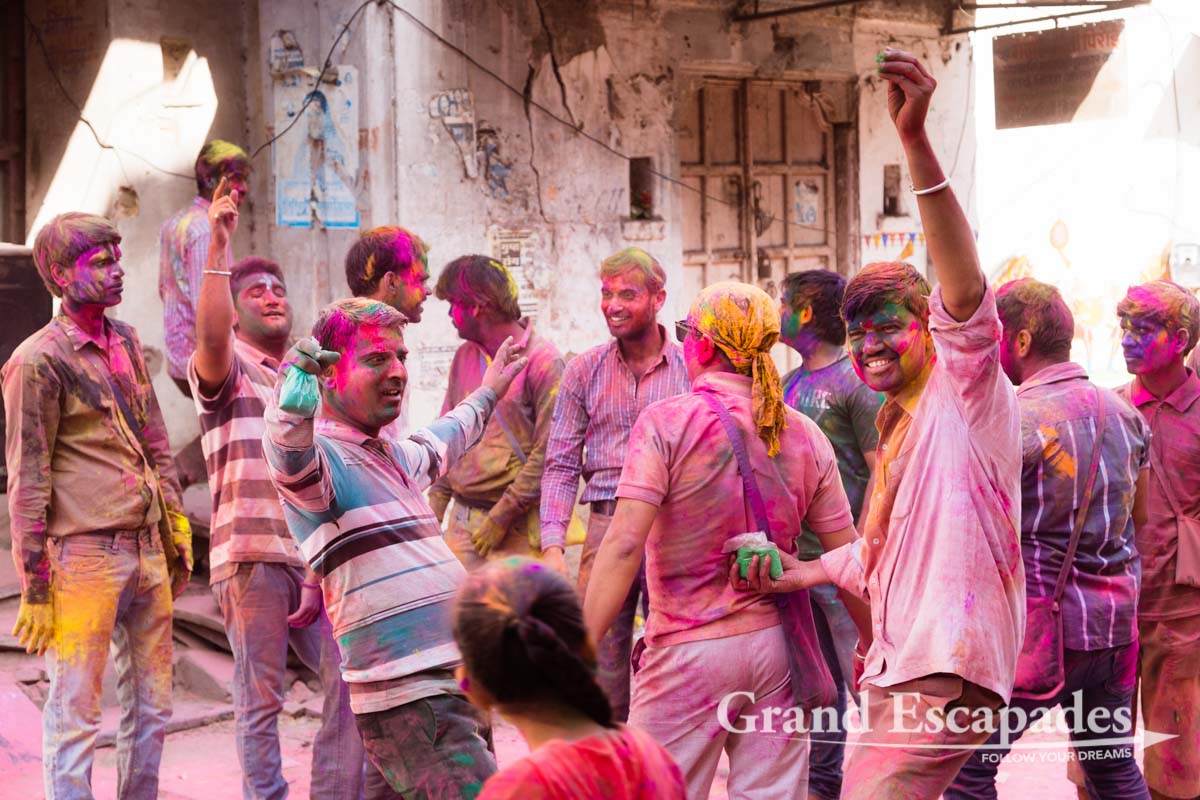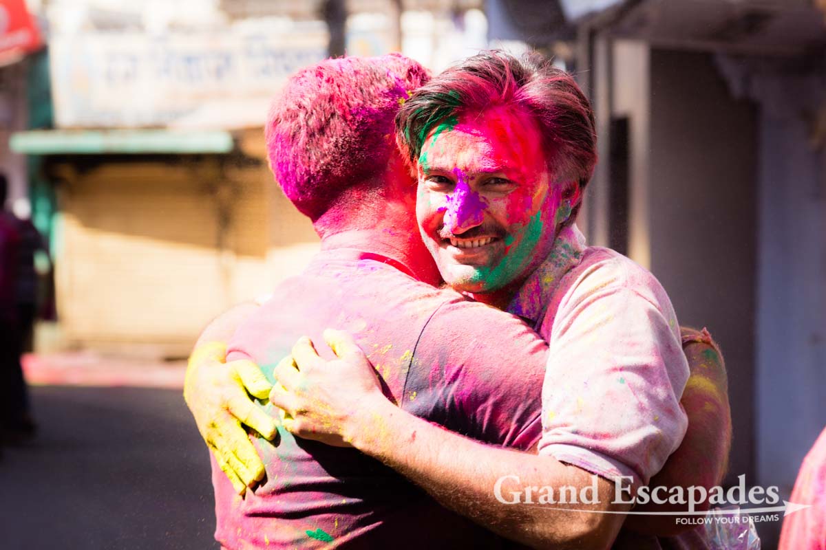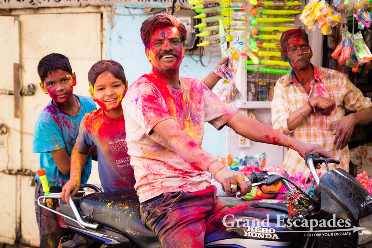 Like two years ago, we noticed the Holi Festival is more or less a men’s affair. Hardly any women were seen in the streets, a few girls were hiding on upper floors throwing water bombs at the people below.