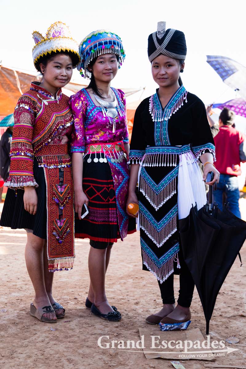 Blue Hmong, Black Hmong & White Hmong Traditional Dresses – Hmong New Year’s Celebration – Phonsavanh, Laos