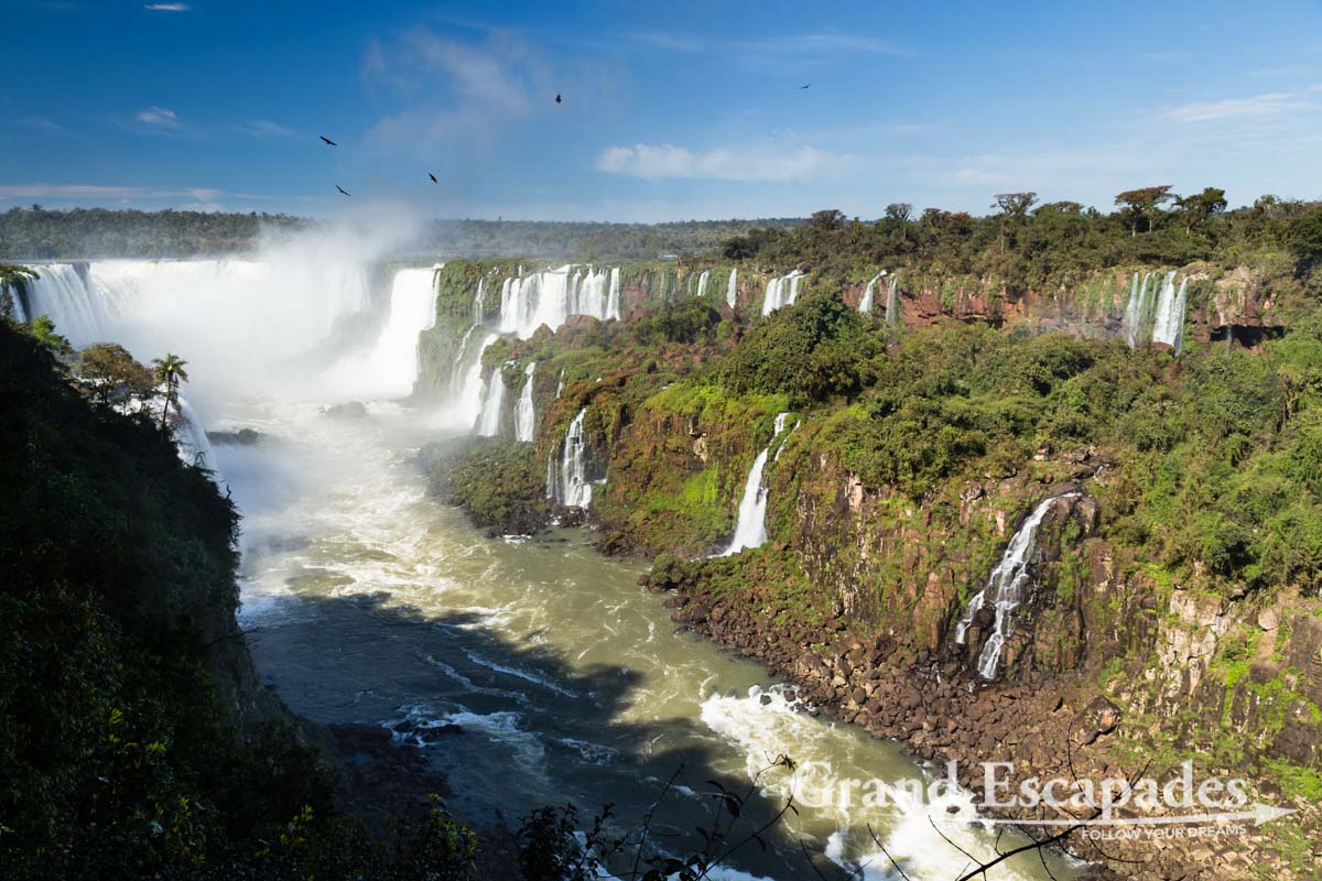 Shared between Argentina and Brazil, the falls are set inside a 2.100 square kilometer National Park, resembling very much the Amazonian rain forest to the north. Most of the National Park is in Brazil, but most of the walks and viewpoints are in Argentina. A few numbers may help to understand what makes them so impressive: The falls are “only” 80 meters high, but together more than 2 kilometers wide! The quantity of water falling down varies a lot depending on the season. Normally it ranges between 1.500 and 2.000 cubic meters per second. But it can be much more! Twice it reached no less than 39.000 cubic meters per second…