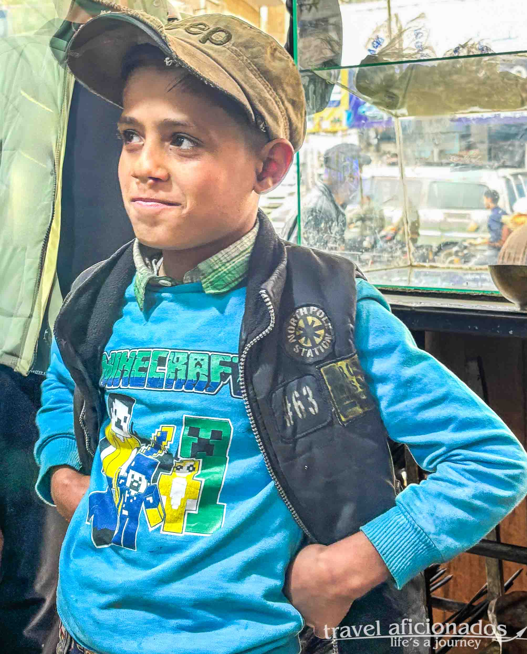 At one point very small kid entered the shop, he was seven years old. His body was so fragile, but his face that of a much older person. He had lost his father in the war and worked in the food stall, for 3 US a day. Later people told this was not a bad salery.