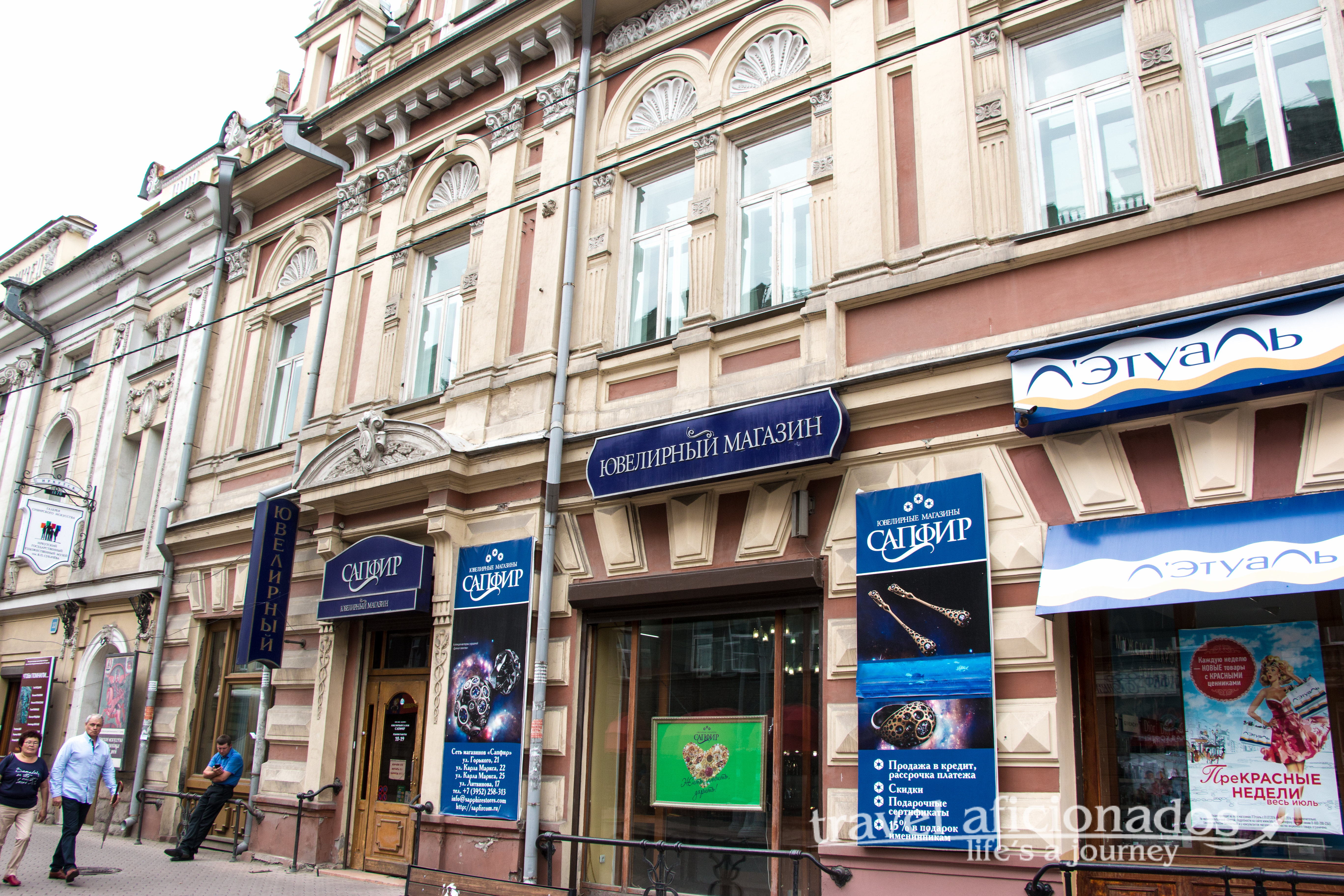 This is where you find lots of shops and a few restaurants. Among the popular places is a beer cellar, where native Buryat girls dressed in Dirndl serve Hacker-Pschorr from Munich and the guy at the entrance reminds of a wanna-be-Tyrolean.