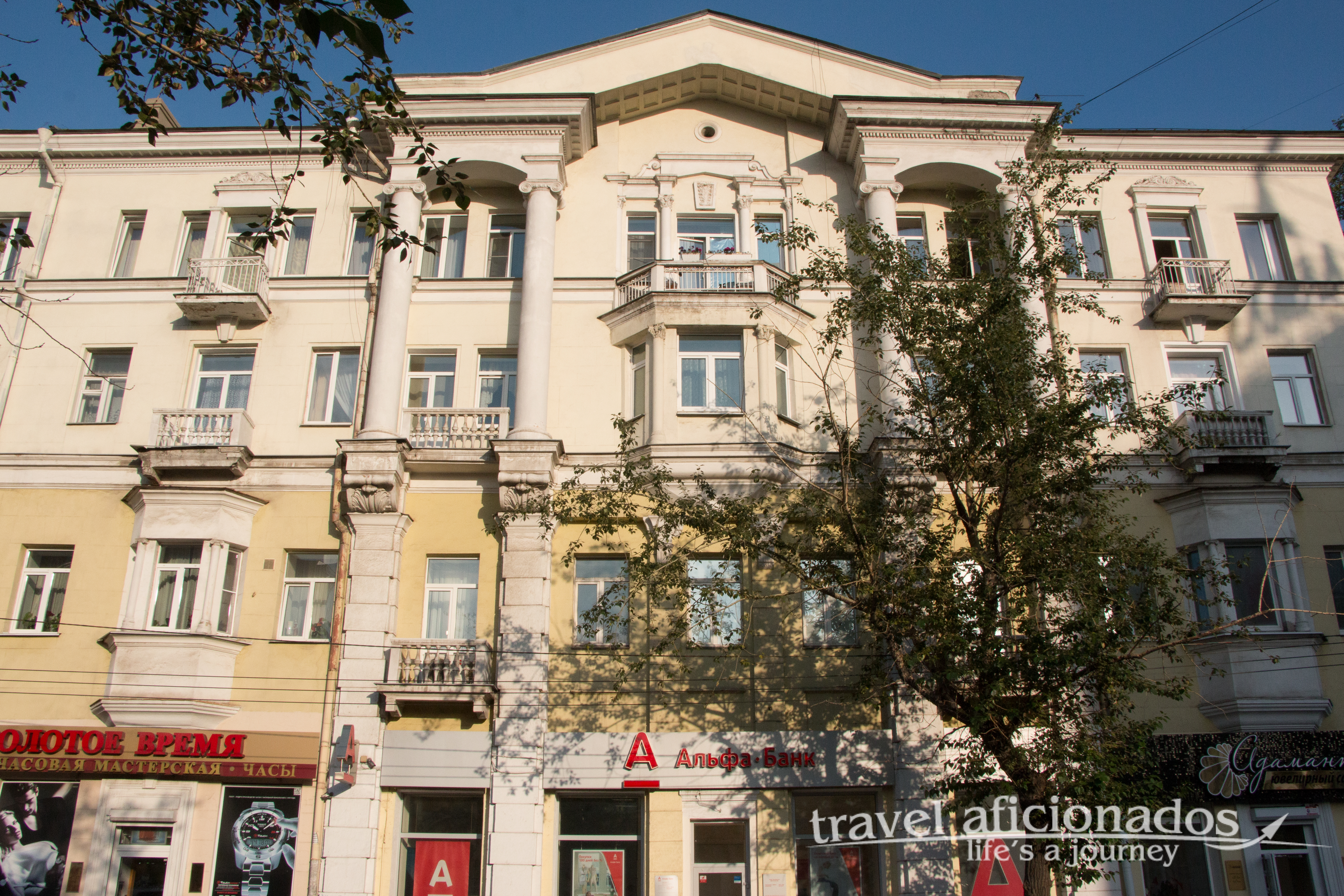 Irkutsk’s sights can be easily explored by following a green line painted on the sidewalk, by using the corresponding city map you always know where you are and what you are seeing. A long stretch takes you along Karl Marx Street with is grand buildings, unfortunately many disfigured by modern advertising.