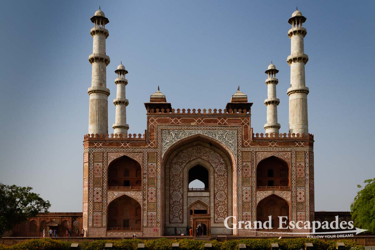 Akbar’s Mausoleum is made of the famous red sandstone with beautiful decoration, flowers, grapes and lots of elegant Arabic writing. Inside a guide says a prayer that echoes through the burial chamber. The other attraction there are the many monkeys in the gardens around Akbar’s Mausoleum, who at times just seat in the middle of a enthusiastic tourists and seem to pose for the picture.