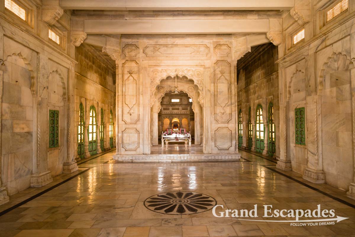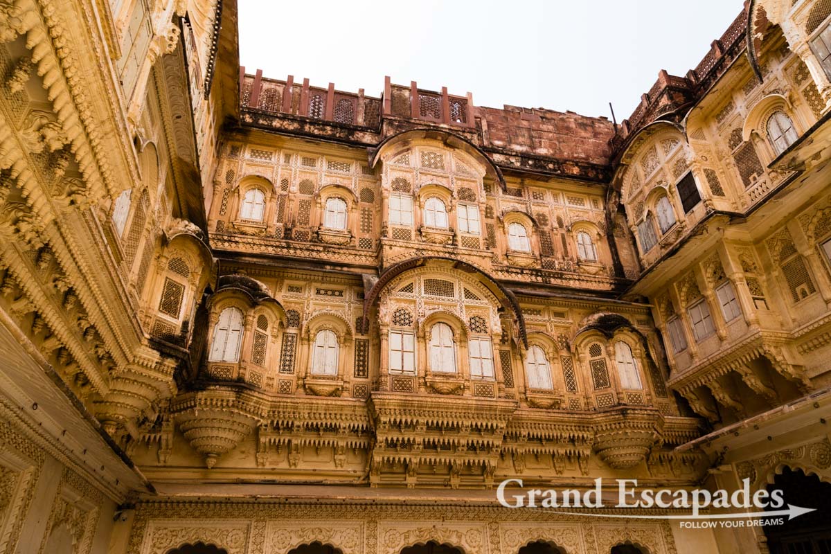 This mighty Fort was never conquered. By sitting high up on a hill, its 36 meters high walls make it an impressive landmark of the Blue City. A breathtaking sight! The excellent audio guide took us through palaces with intricate carvings, expansive courtyards with elaborate balconies, arched galleries and heavily ornamented private residences. The tour also provided great background information about the dynasty that ruled over Jodhpur and the role of the Maharana in today’s society. The Fort’s sheer size and the delicate architecture of the buildings inside make it one the most magnificent forts of Rajasthan.