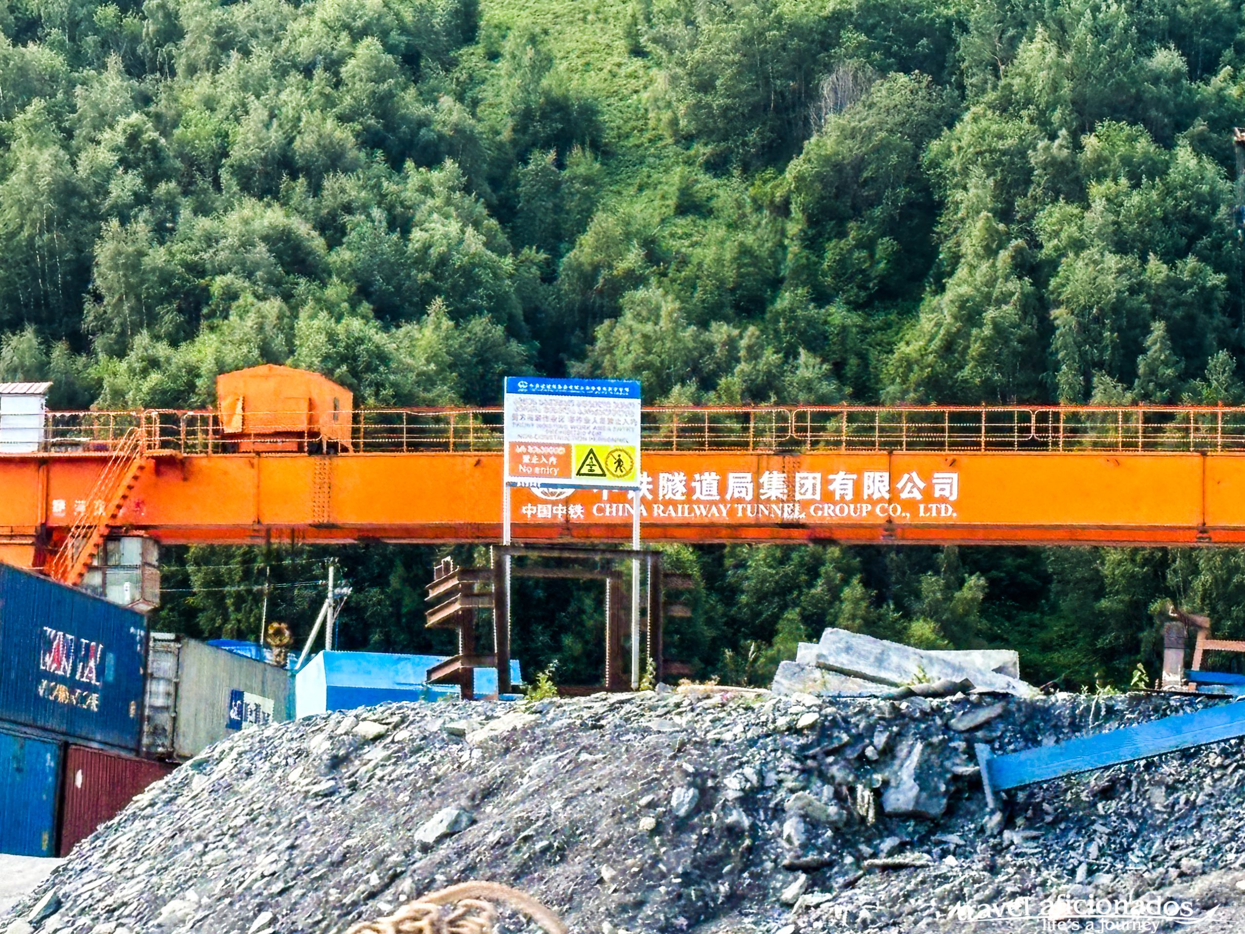 Chinese companies dig tunnels into the mountain to create a second road – the current two lane road forces cars to crawl behind overloaded trucks up the mountain
