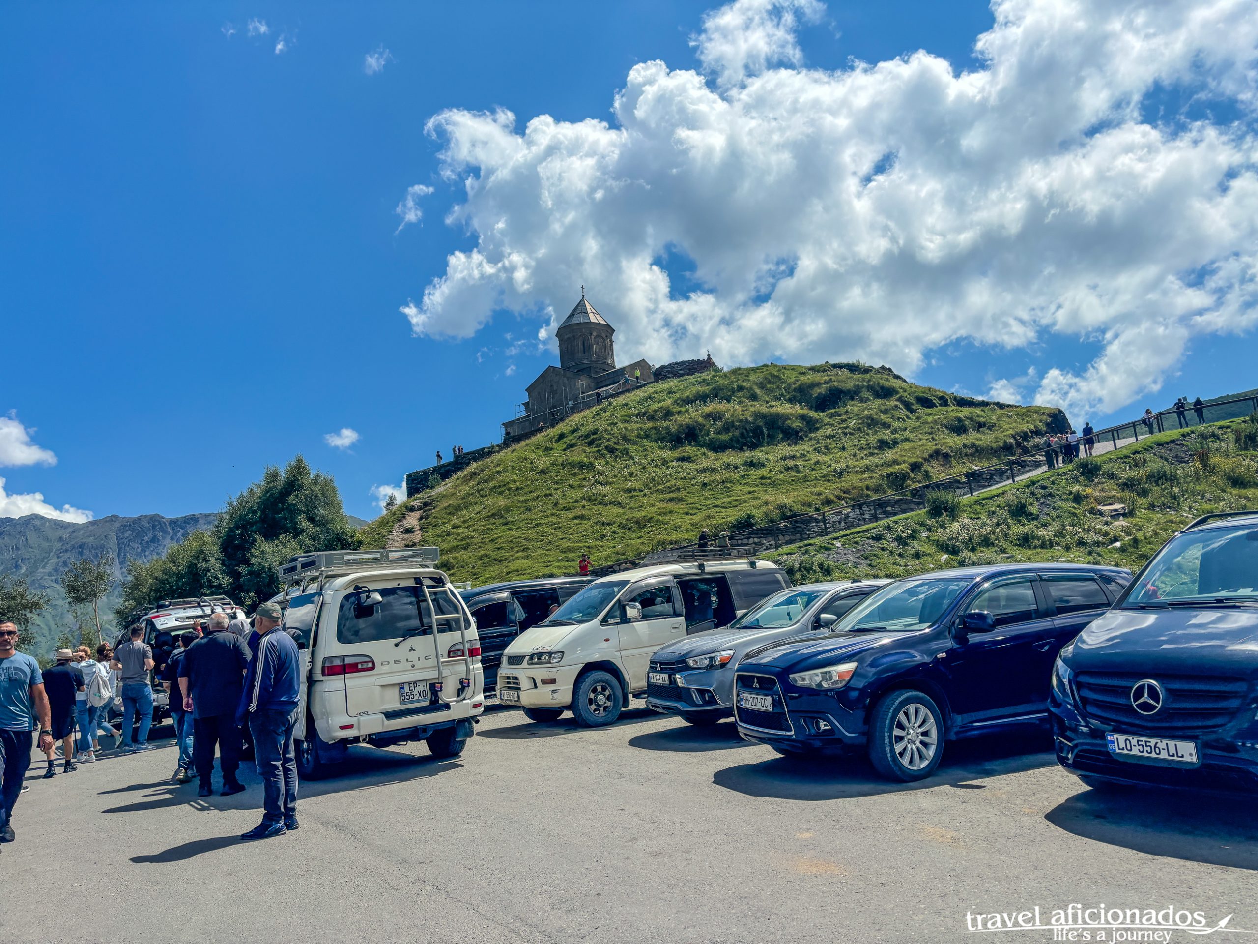 Literally every tourist who arrives in Stepansminda pays tribute to Gergeti Trinity Church, an 2 hour hike from the city center. For those not fit enough or too lazy to walk, until recently the only way up was by a 4-wheel drive. Driver took advantages of this and charged random sums. These times over over, a smooth two-lane concrete road runs all the way up to the church, bringing thousands of tourists up the mountain. Funnily, most online information still sticks to the legend of drivers ripping you off. Maybe out of ignorance or because it sounds dramatic and adventurous.