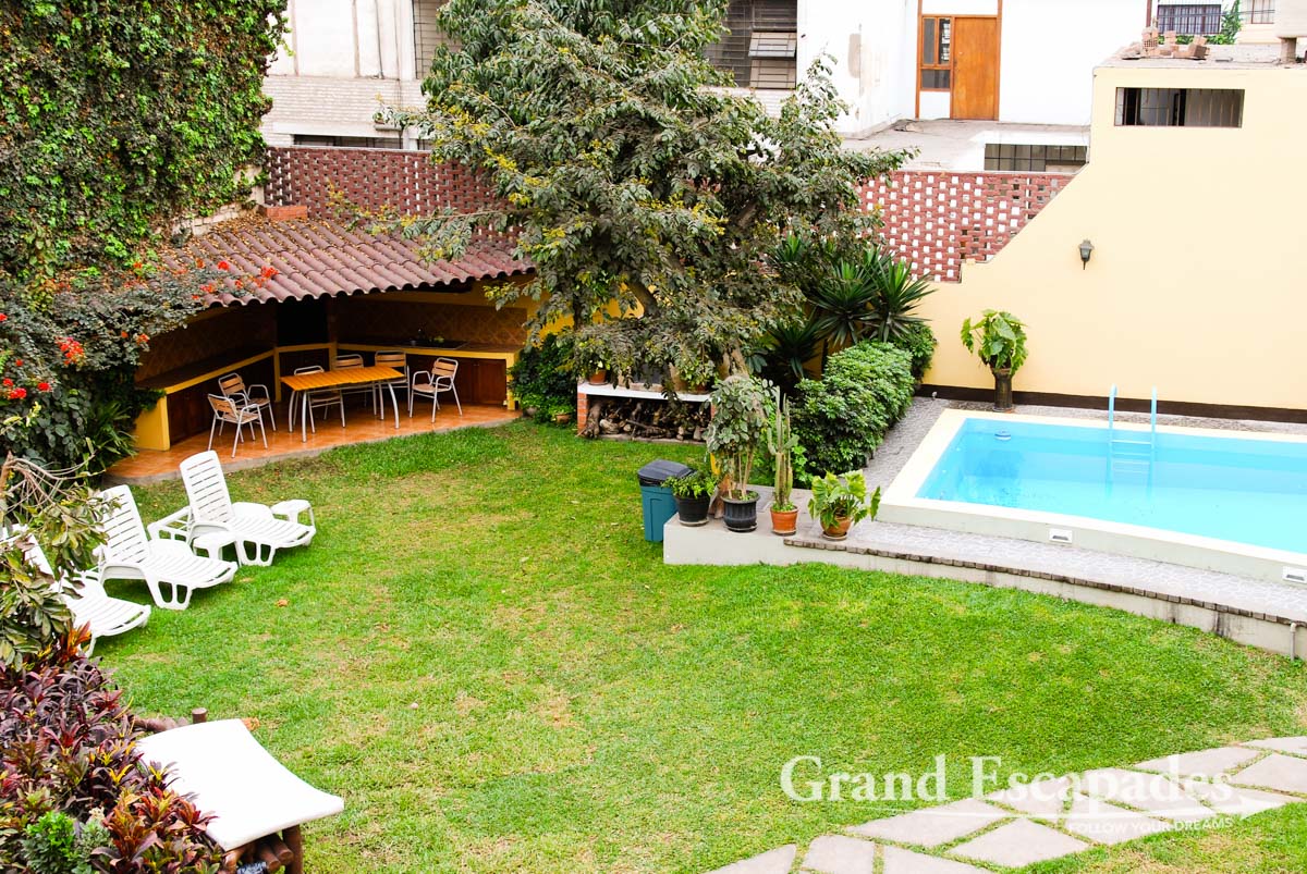 Locals sit in windy café wearing winter coats, ponchos and heavy jackets. Doors and windows are all wide open, because inside it is even cooler. Upon Heidi´s idea & request of having a swimming pool, we had checked into the Alberque Juvenile International in Miraflores for a hefty 30 USD a night for a double room, which must indeed be a great summer location with its spacious lobby and large communal area, big garden and pool. Now beginning of September it was just cold. We even moved into a smaller room the second night hoping to warm it with body temperature … Well, that did not work!
