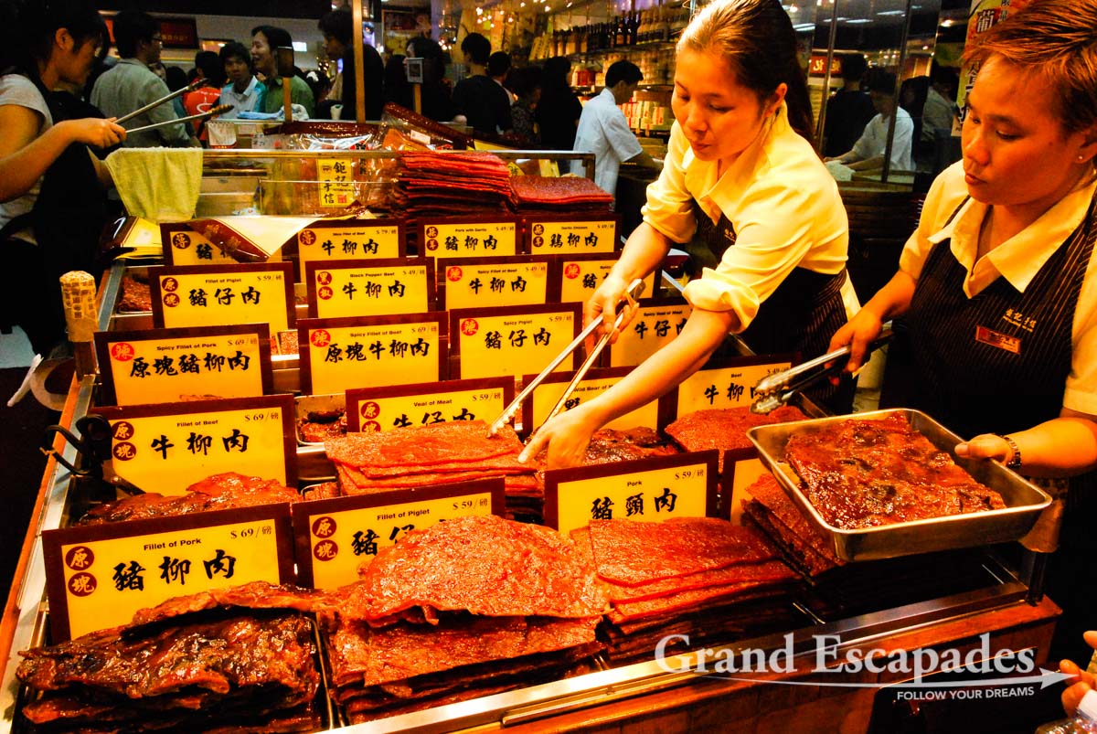 In the afternoon, Chinese tourists from the Mainland can be seen shopping in expensive jewelleries shops or local delicacies like Niu Ron Gan, flat smoked different kinds of meat