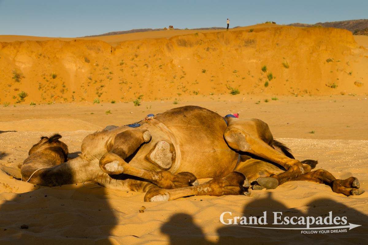 It was not our day. A two-hour evening camel ride turned into something truly unforgettable. Swaying high up on these creatures through a congested main road brought us very close to panic attacks. We could think of nothing else but falling off and being squashed by the trucks and busses that raced by within an inch, relentlessly honking while passengers took photos of us with their mobile phones. In the midst of this mayhem, it was easy to ignore your repeated complaints that Gilles’ camel had a limp and was obviously hurt.