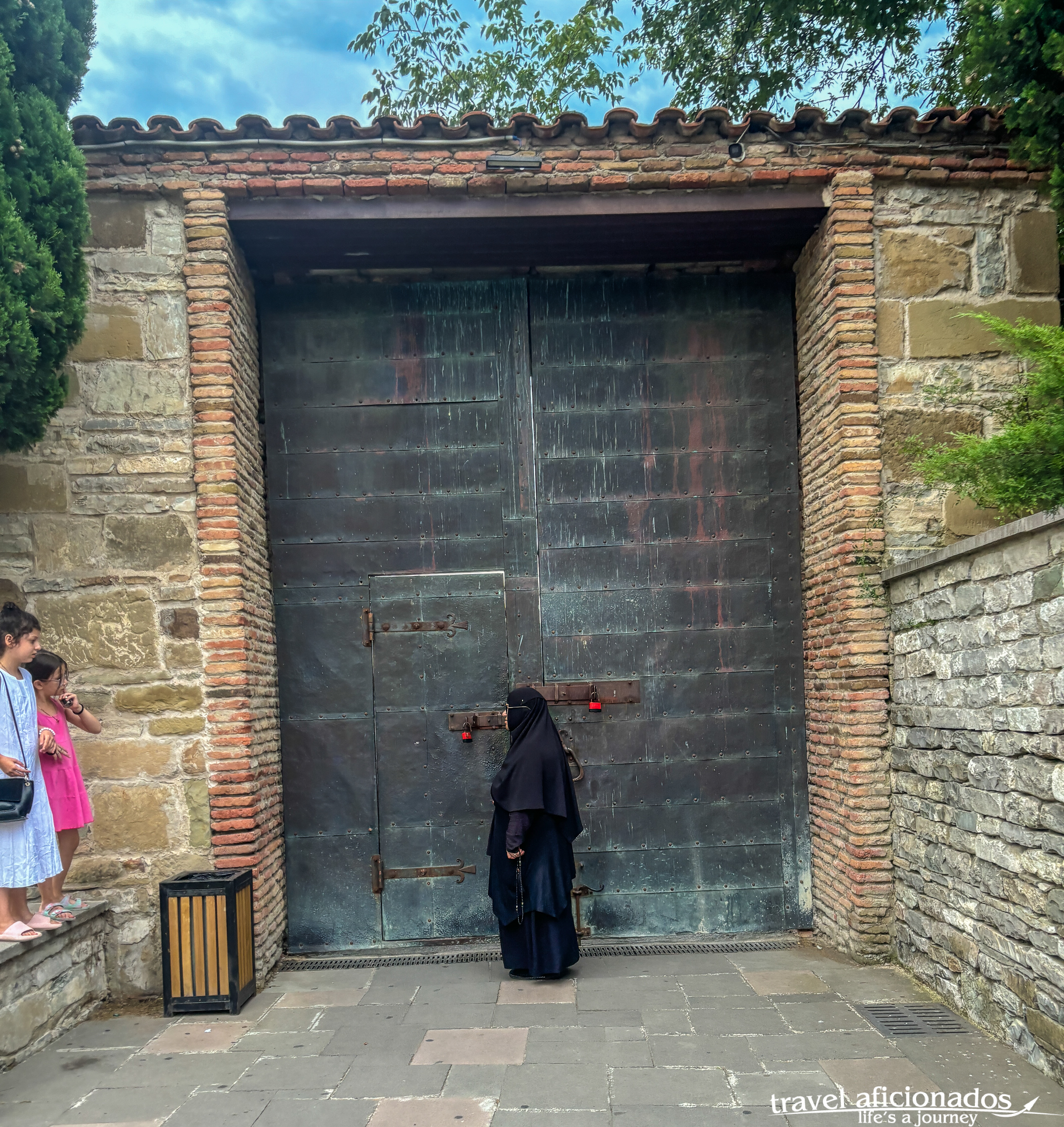 We arrived rather late and were not allowed inside the church, we tried to persuade the nuns, but no mercy. Funnily enough when we were ushered out through the big gate, Georgians managed to come in.