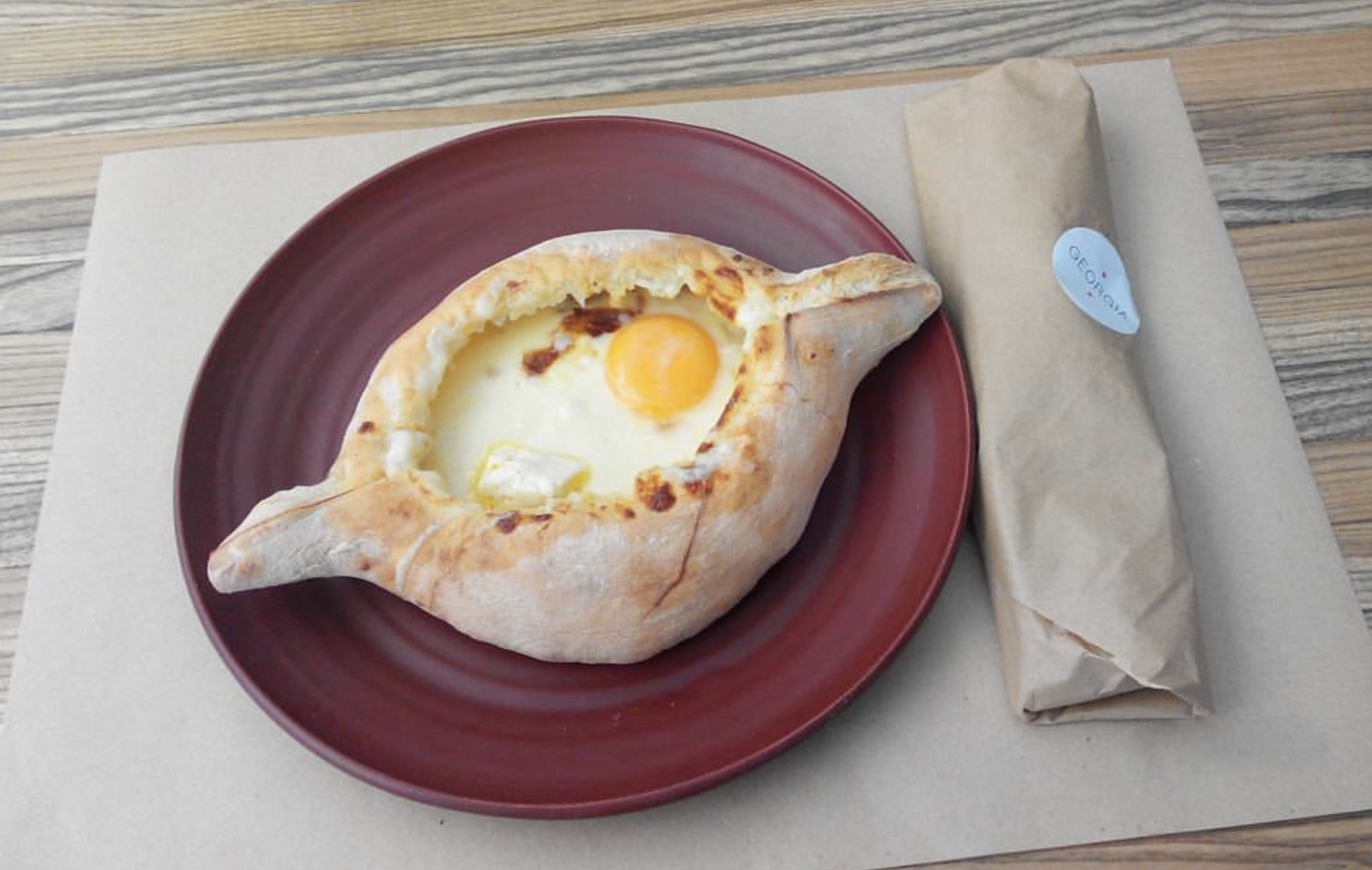 Khachapuri Adjaruli – you musst like Cheeseburger, lots of Cheeseburger and eggs