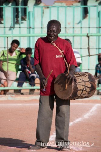 We arrived in time, which means way too early. A few men were squatting in the shade, we followed suit, trying not to draw too much attention. After a while a group moved to a place that looked like a ticket booth, we moved along. Friendly men offered to pass our money to the front of the line so we did not need to wait. Only minutes later, another kind person ushered Kelly and me inside the open-air arena. We were the first visitors and able to choose our seats. Royal treatment!