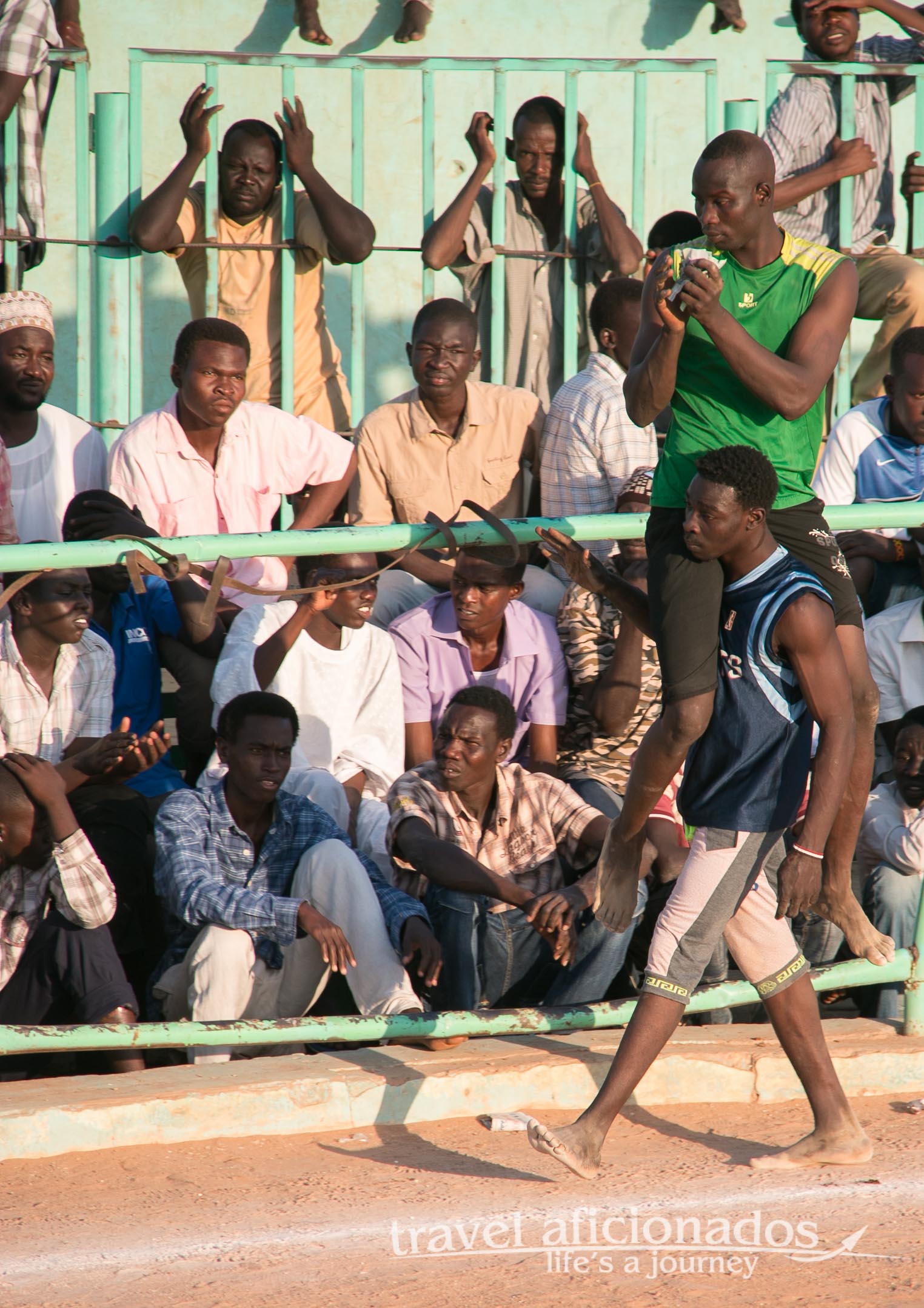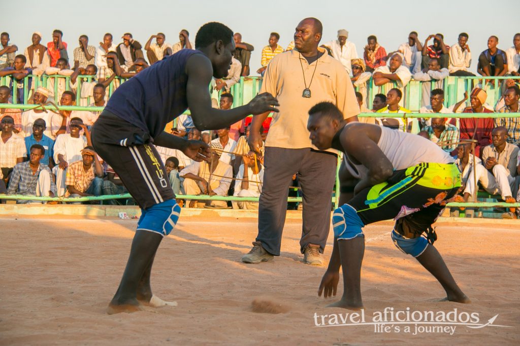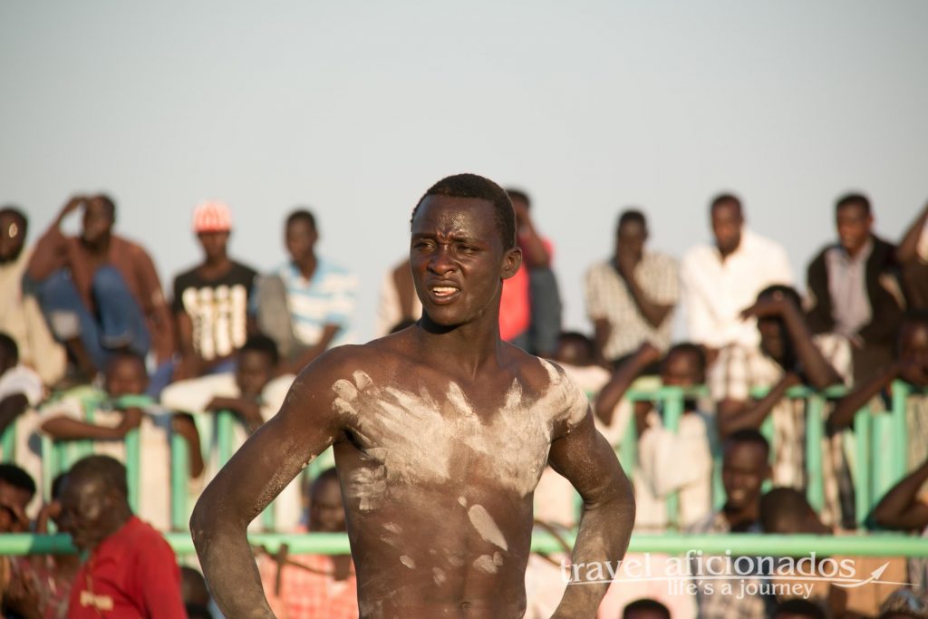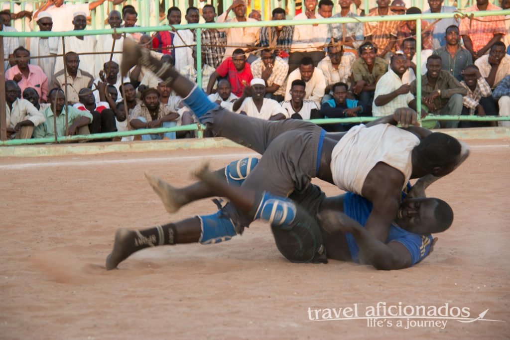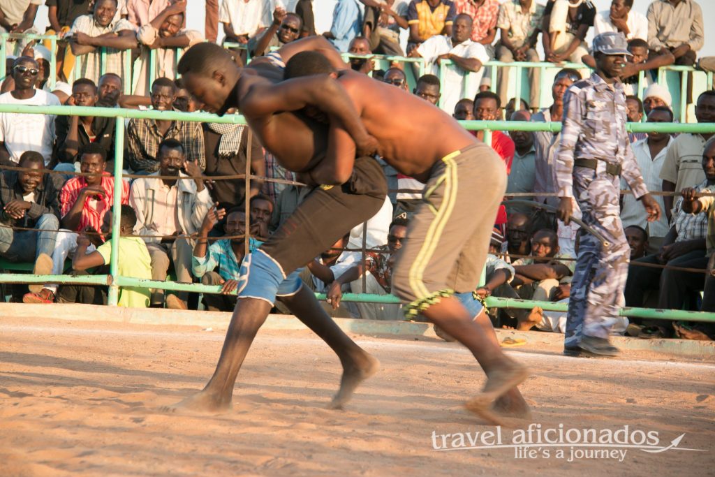 Young Nubian wrestlers from the south of Sudan with sculptured bodies like the Chippendales compete against each other every Friday night in northeastern Khartoum. A must see for Kelly and me.