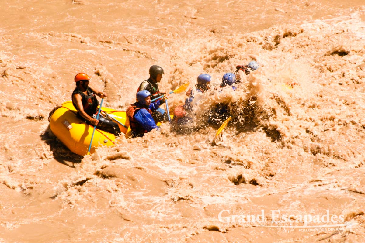 Rio Mendoza is just ideal for beginners who are looking for strong adrenaline output. It was truly exhilarating to zigzag between the rocks at high speed in the muddy glacier waters. The temperature of the water was 11 degrees and when the first waves hit us, at times more than one meter high, we even got a good taste of it