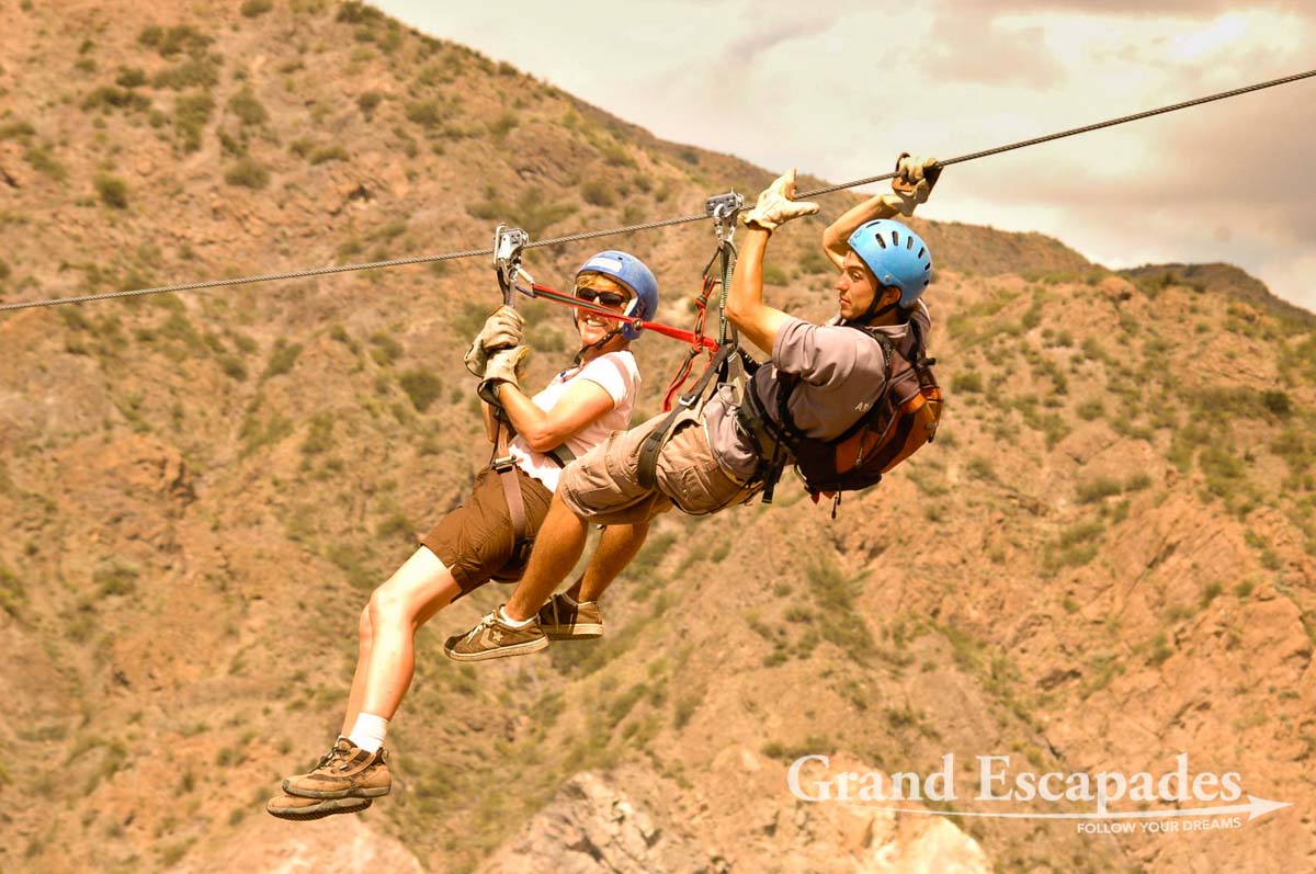 On Sunday, we went towards the mountains again and spent the whole day white water rafting, horseback riding and “canopying”. We both loved it so much! In the morning, we separated since Heidi had been too impressed by a video presentation that showed rafting through category III rapids. So instead, Heidi went horseback riding in beautiful landscape with the Andean backdrop, while Gilles tried White Water Rafting for the first time. This was an incredible experience!