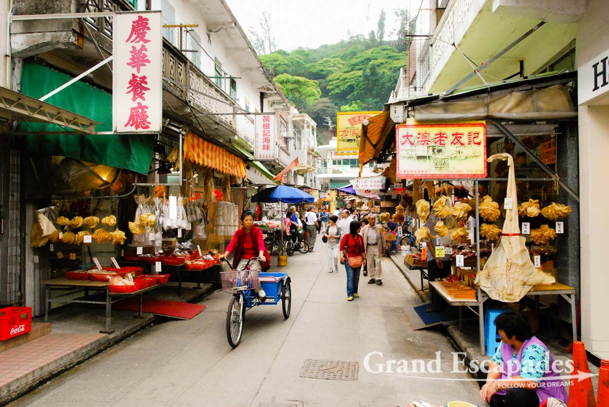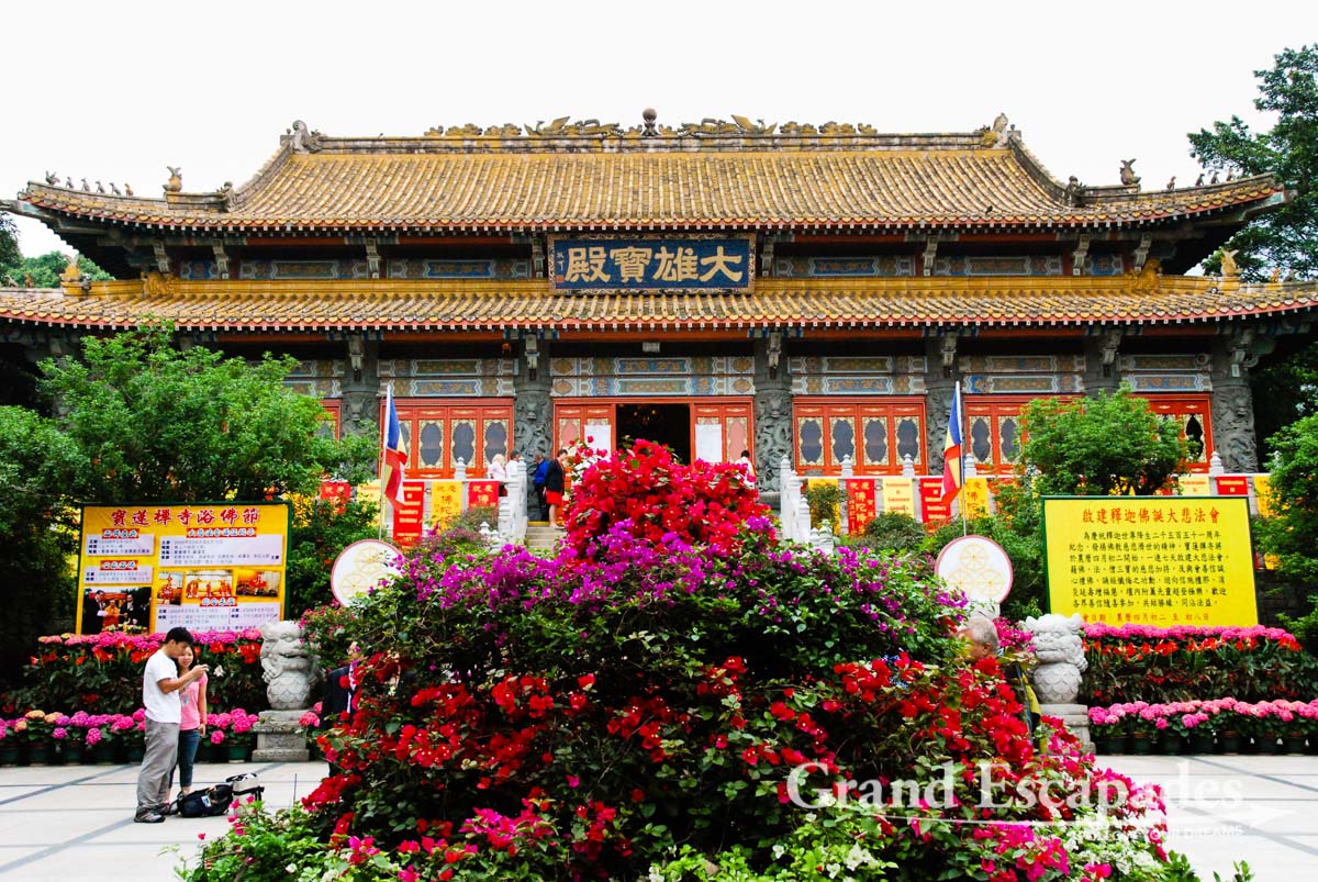 Po Lin Monastery has been there forever and when Heidi visited it 20 years ago, there was nothing but the monastery in this area of Lantau. Now, there is the Giant Buddha, a convention centre, restaurants AND Ngong Village. Not that it is a real village, but an alley of restaurants, including Starbucks & Zen Taiwanese Bistro, and souvenirs shops… Tourists coming up in the gondola from Tung Chung, the final stop of the M.R.T. (subway) line on Lantau Island have to pass through this fake village in order to see the Buddha and the Monastery.