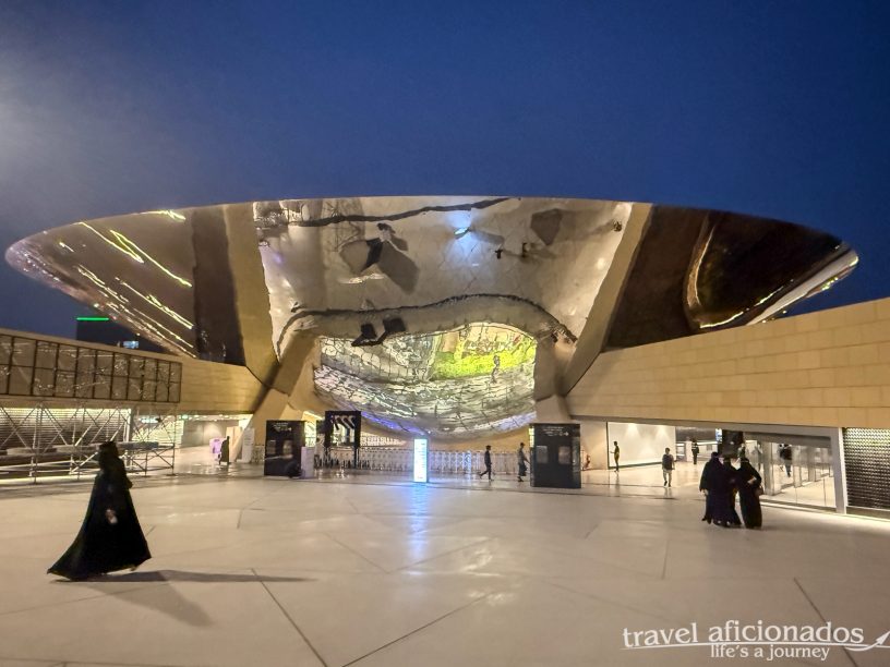Every station is beautifully designed and spotlessly clean—like most public spaces in Saudi Arabia. But Qasr Al Hokm Metro Station stands out. Located near the renovated historic quarter of old Riyadh and close to Al Masmak Fortress, it feels especially significant. The station features an open pedestrian plaza and a striking polished stainless-steel canopy. The canopy visually connects the different station levels, draws natural light down into the underground spaces, and provides shade for the surrounding public areas.