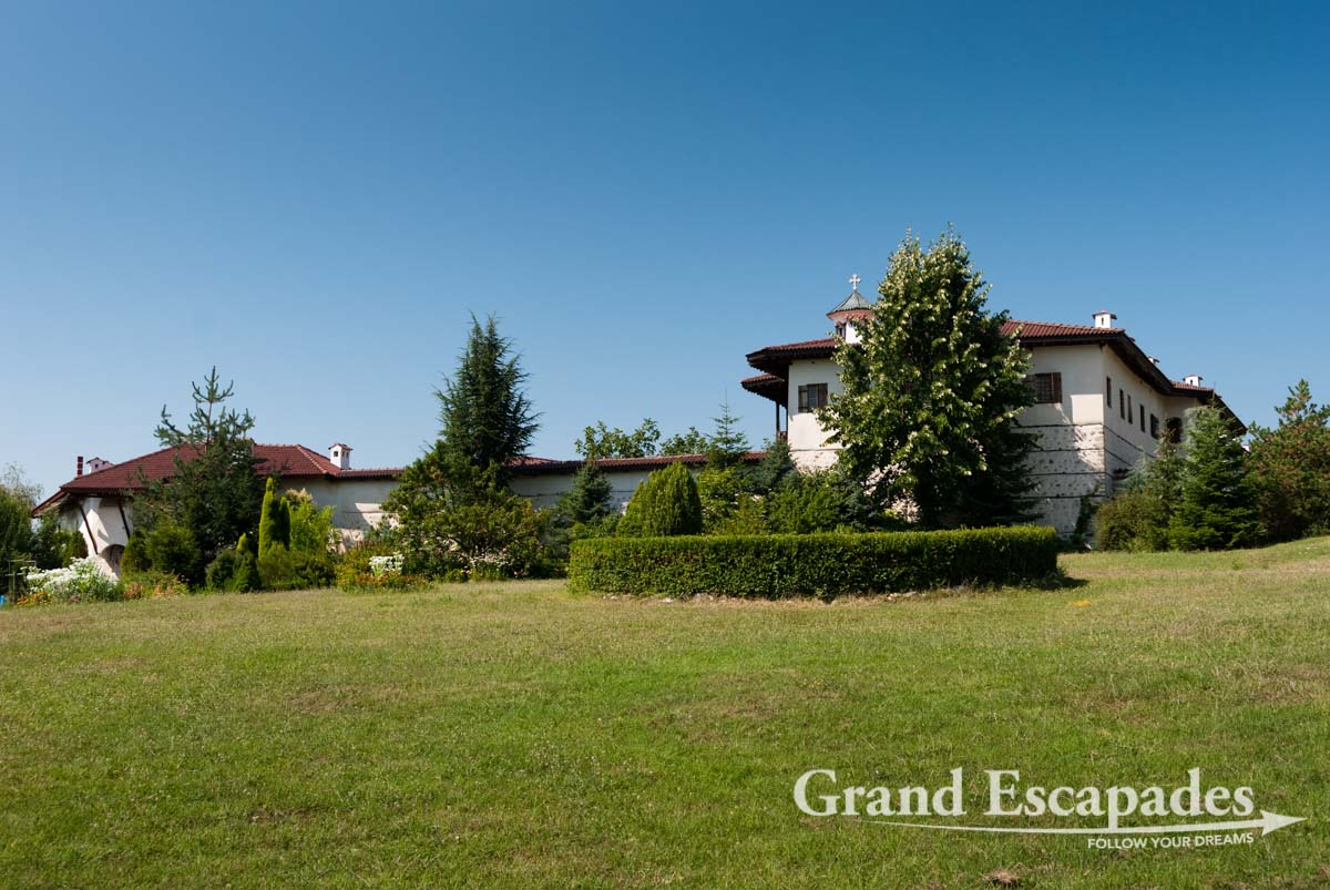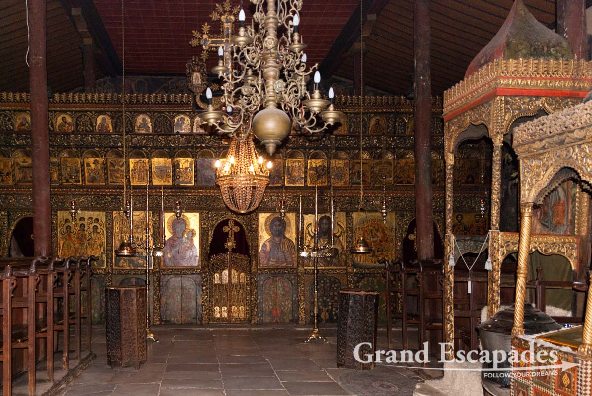 Nearby Rozhen Monastery was our personal highlight in this area, so different from any monastery we have ever set foot in. Like all other Bulgarian monasteries it had been destroyed and rebuilt several times over the last 800 years. But most unique are the scenic vine-covered inner courtyard and the wooden walkways that line the walls of the L-shaped refectory. The ancient wooden planks creak with every step and the wooden stairways indeed looked centuries-old. The church contains beautiful 200 year old murals and stained-glass windows.
