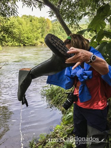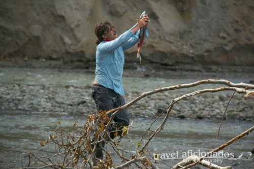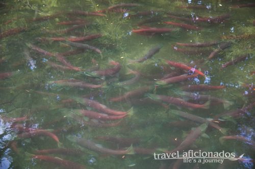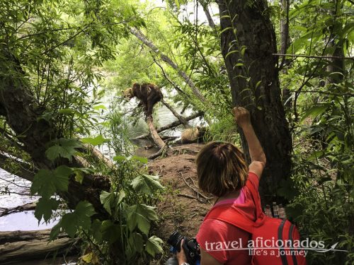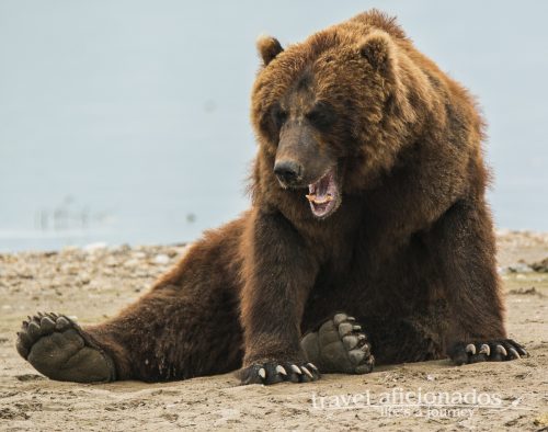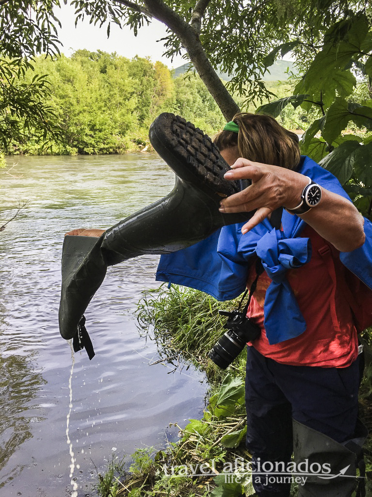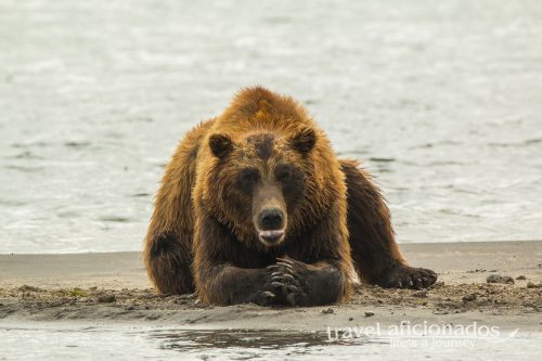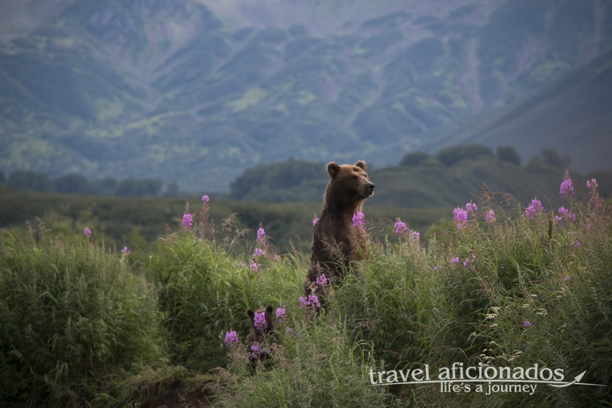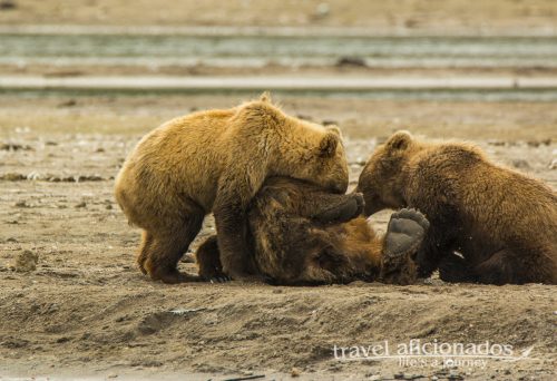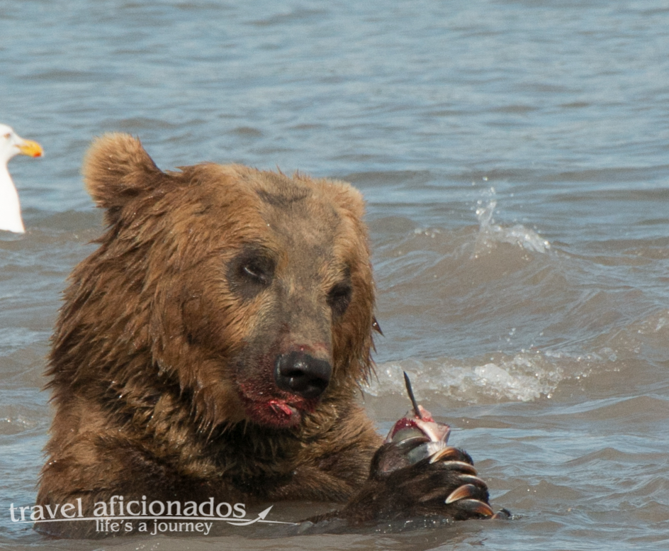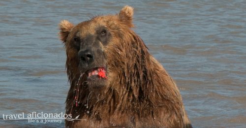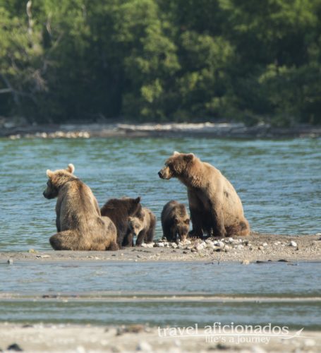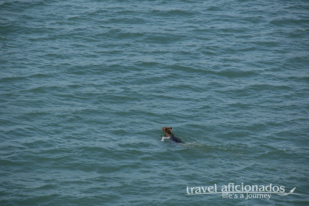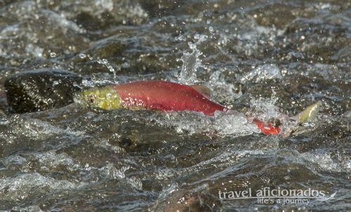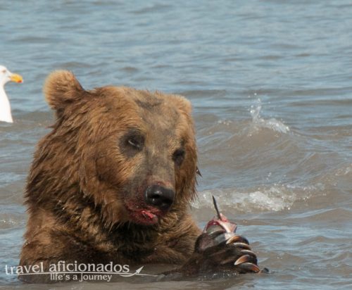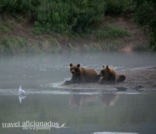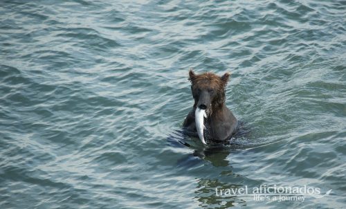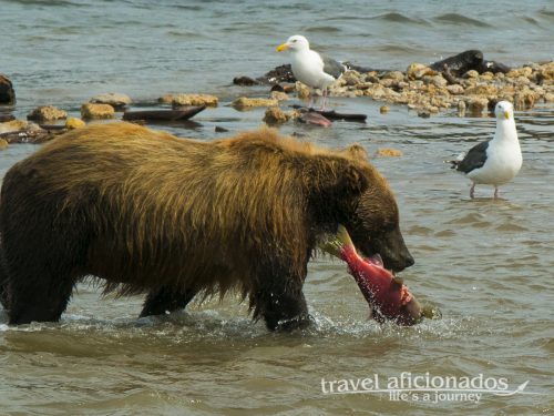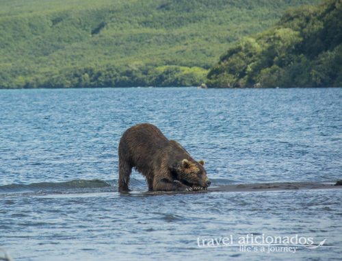 - To get a better view of where the salmons are the bears stand up or climb on wood trunk