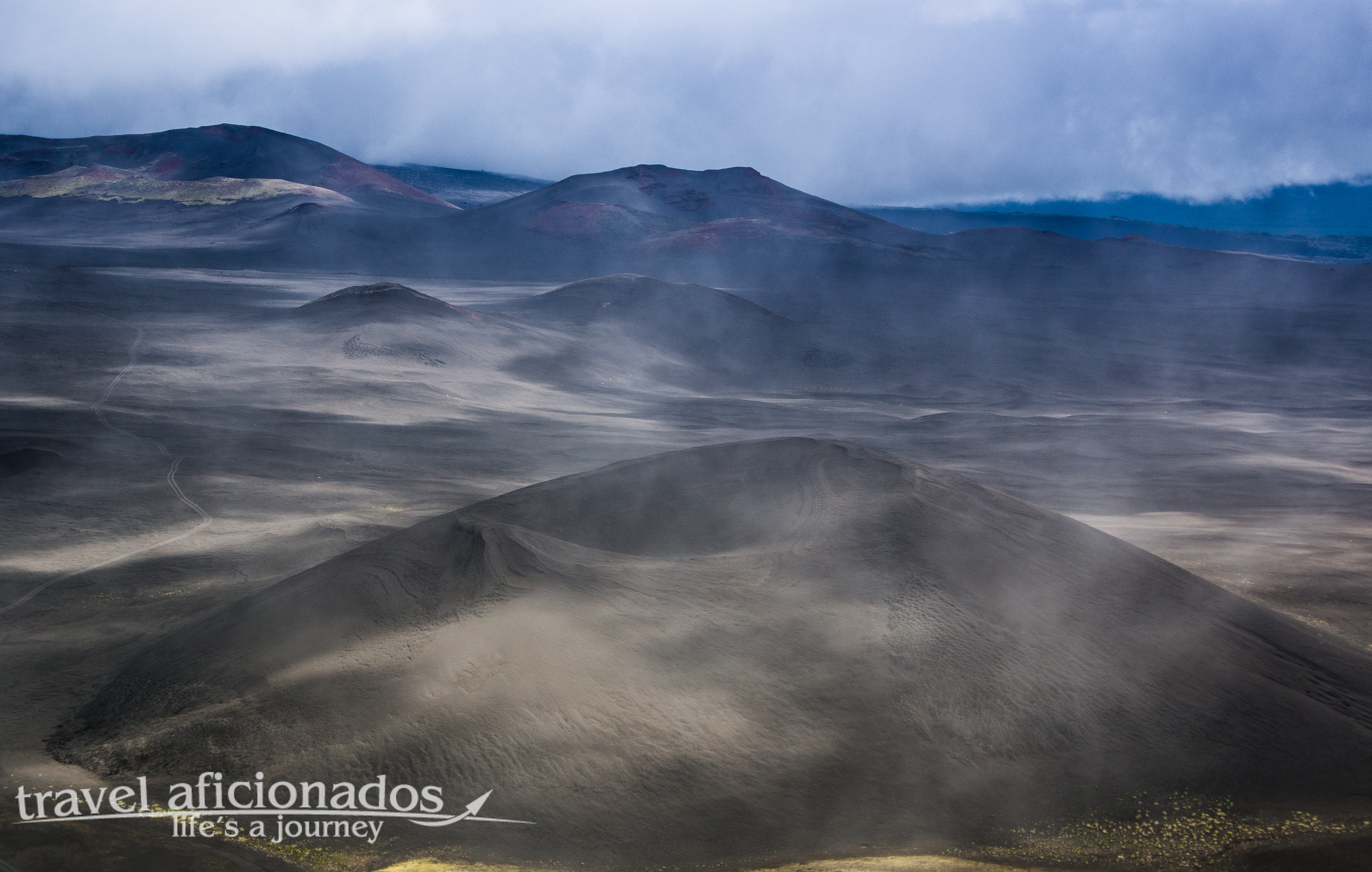 - base of Tolbachtik, everything is covered by black sand from the eruption