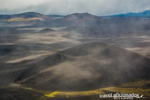 - base of Tolbachik, everything is covered by black sand from the eruption