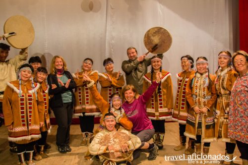- Korean Restaurant in Petropavlovsk: Sascha and Anna, our guides, Rene and Michaela my travel mates