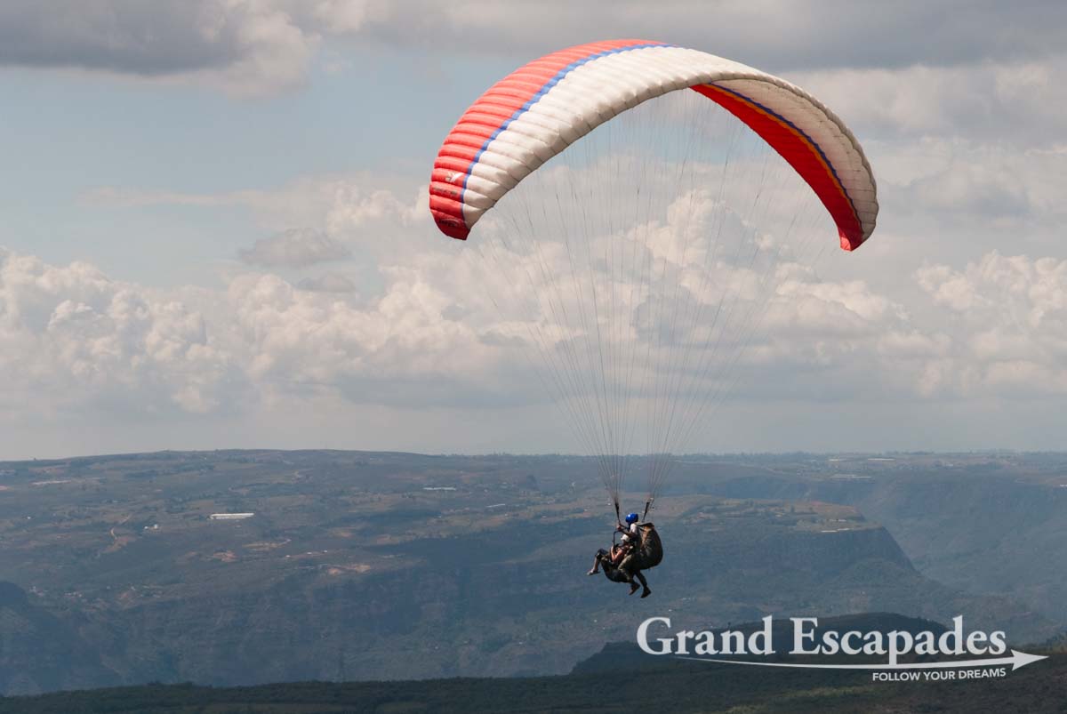 Reaching for the Sky: tied to an instructor, Gilles took to the air over the “Zona Tabaca” for about 20 minutes
