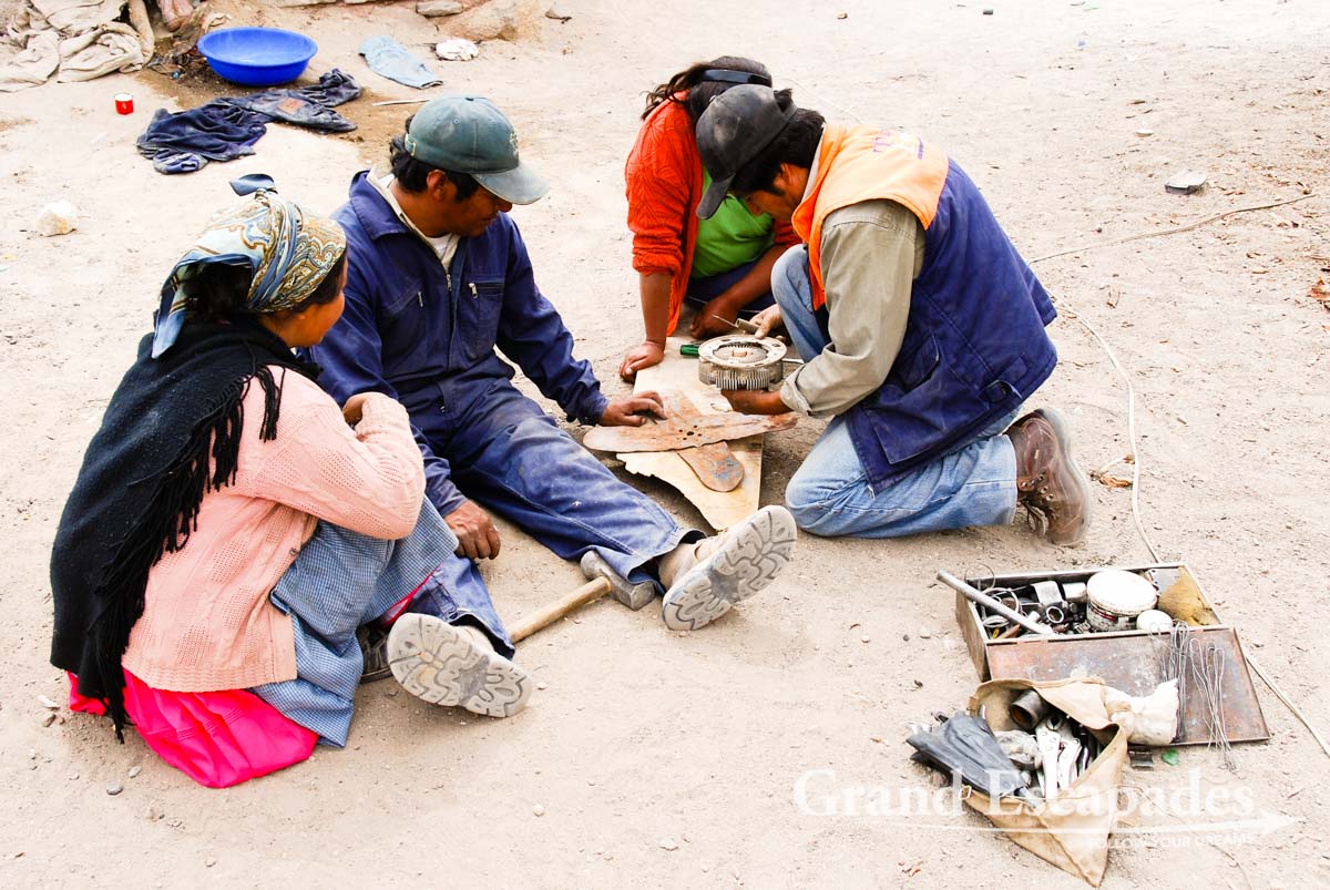 On the second day, while driving up a hill we heard a loud noise and the engine started smoking: the cooler fan had literally exploded. Yes, that does happen, too, it seems! We drove back slowly to the closest village, hoping to find spare parts. In the middle of the desert, sweat dreams! But Don Gerardo, in less than 1.5 hours, recreated a new cooling fan using a piece of rusty iron! In the beginning, we shook our heads watching him working along. At the end, believe it or not, it worked …