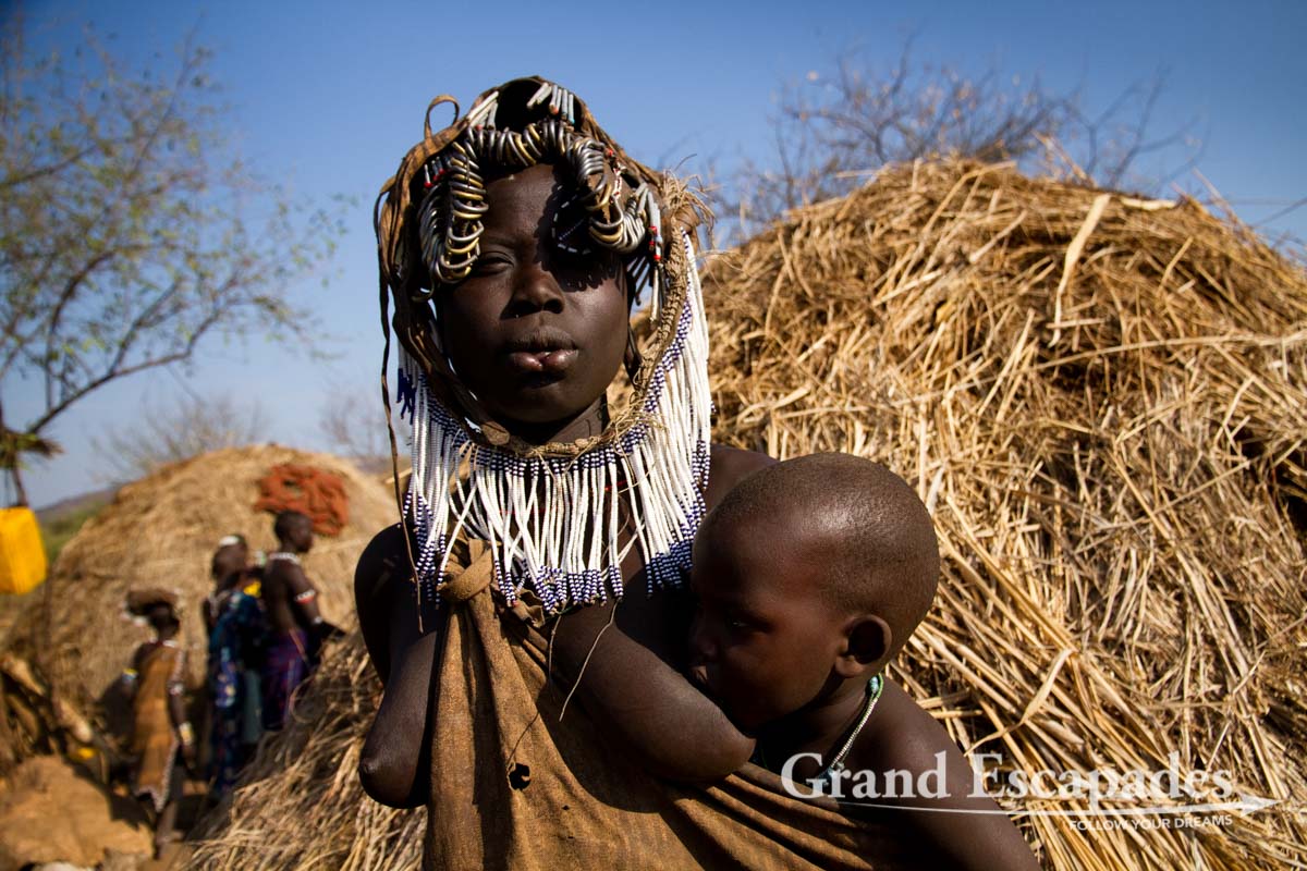 Only at the second village things took their course. The Mursi stormed towards us when we got out of the cars, pulled and tugged, displayed scars, lips with and without plates, Kalashnikovs – Nobody wanted to be overlooked.