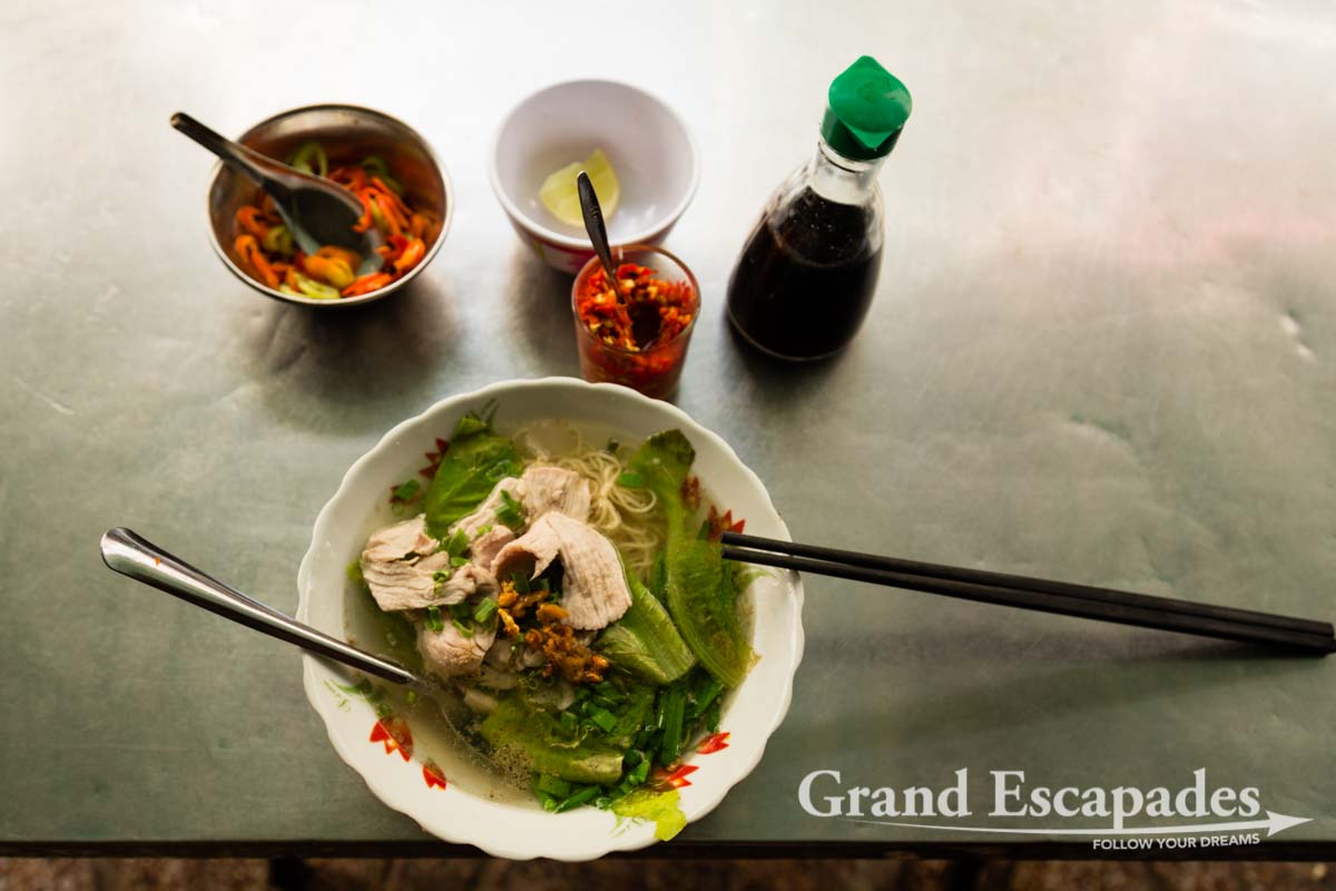- Street Food – Vietnam’s Street Food is amazing, extremely diverse and cheap, the perfect way to experience the country in a more genuine way, among locals. Hanoi probably is the food-capital, with a wide choice of excellent small restaurants and food stalls specializing in one or two dishes. We must admit the Lonely Planet did a superb job pointing out a few great ones, like Pho Tin, Bun Cha Nem Be Dac Kim or Banh Cuon. We “only” tried those three, all absolutely delightful! Also a must-visit in Hanoi are the local restaurants and street stalls selling a light beer brewed daily, called Bia Hoi Ha Noi. A glass is as little as 8.000 or 9.000 VND or 0,4 USD! Best enjoyed outside the tourist ghetto of the Old Quarter. There, locals thrilled by our presence invited us for drinks. Having had a few beers themselves they were eager to make the most of their 3 English words…