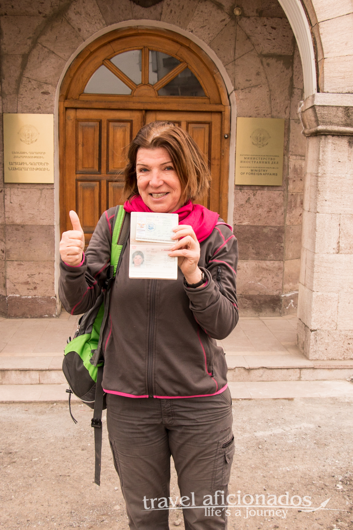 Proudly presenting visa in front of Foreign Ministry in Stepanakert, the capital of Nagorno Karabakh