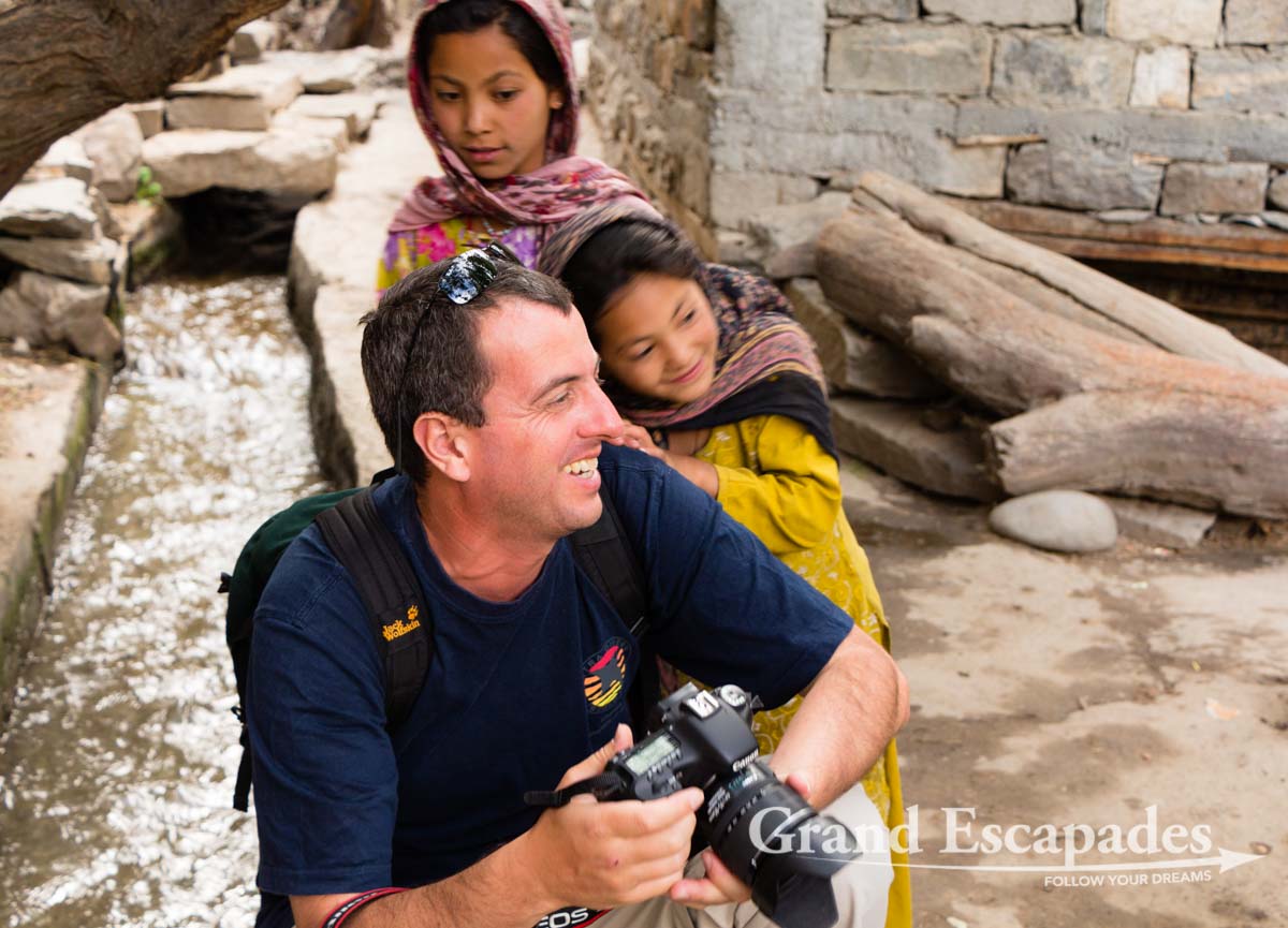 A steep ten-minute climb brings you to a place of incredible beauty, a display of immense fertility. Plots – neatly fenced in by small stonewalls – glow in different shades of green or golden with wheat sheaf swaying heavy on the stems. We identified potatoes, cabbage, carrots, cauliflower, tomatoes, but lots of other vegetables we did not know. The branches of the apricot- and apple trees hang low from the weight of the many fruits. Even grapes grow at this height.